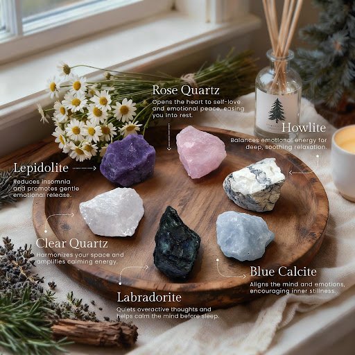 A sleep-focused crystal gift box is ideal for anyone dealing with racing thoughts, restlessness, or an overstimulating daily routine. These sets often include soothing stones in soft tones and work beautifully as part of a bedside ritual.