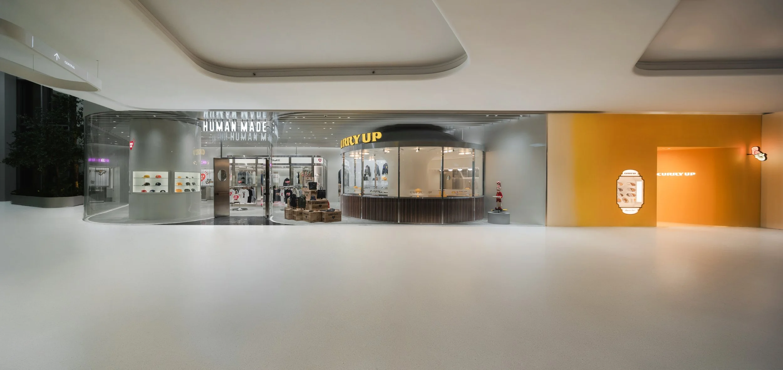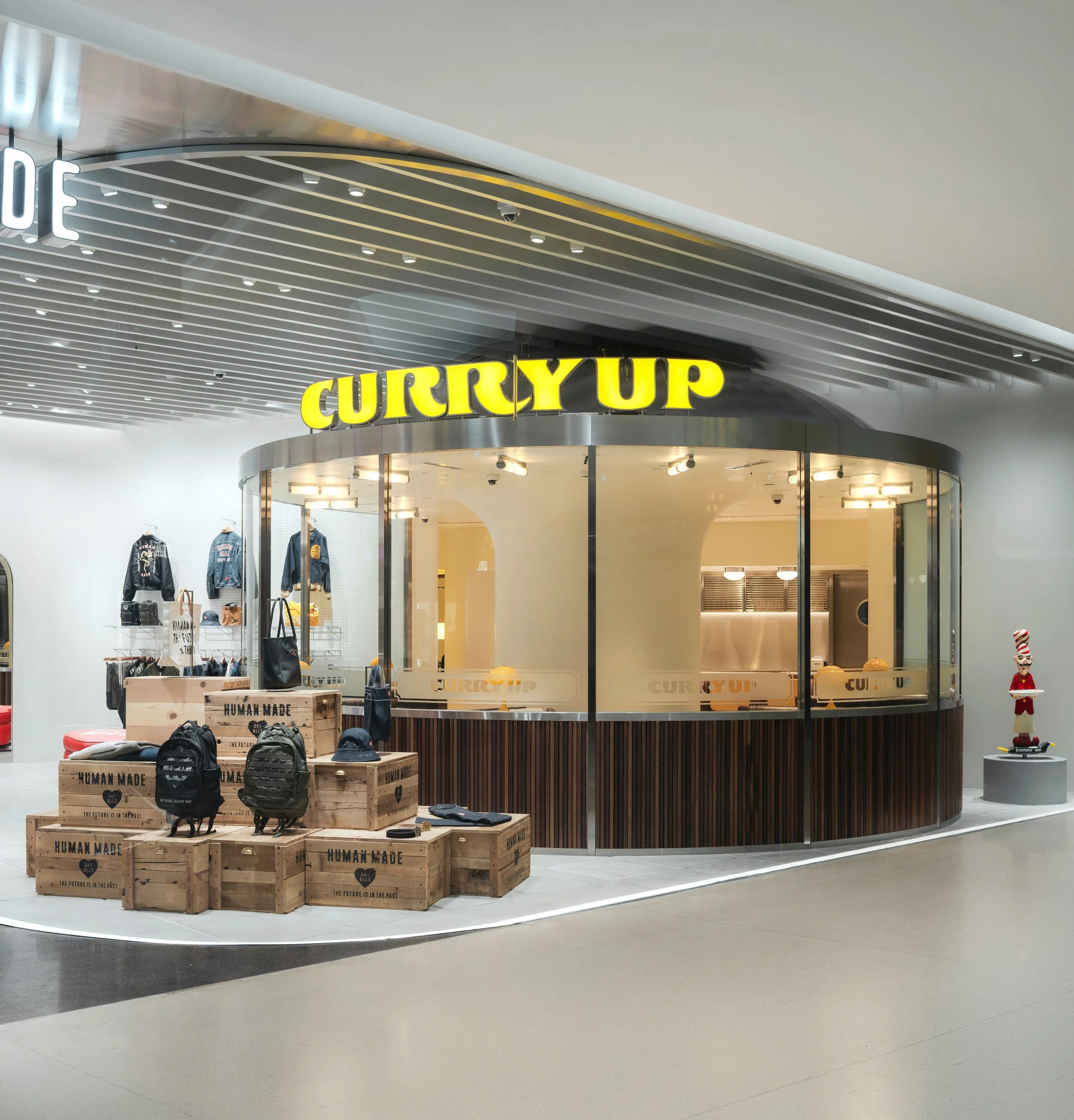 That sense of community extends beyond apparel. Adjacent to the flagship is CURRY UP BANGKOK, the first Southeast Asian location of the brand’s Japanese curry concept. The integration of food and fashion is not incidental—it reflects a broader shift in how brands are thinking about physical space as a multidimensional platform. Here, dining becomes an extension of storytelling, with interiors that fuse Indian-inspired motifs, neon accents, and playful design cues into a cohesive, high-energy environment.