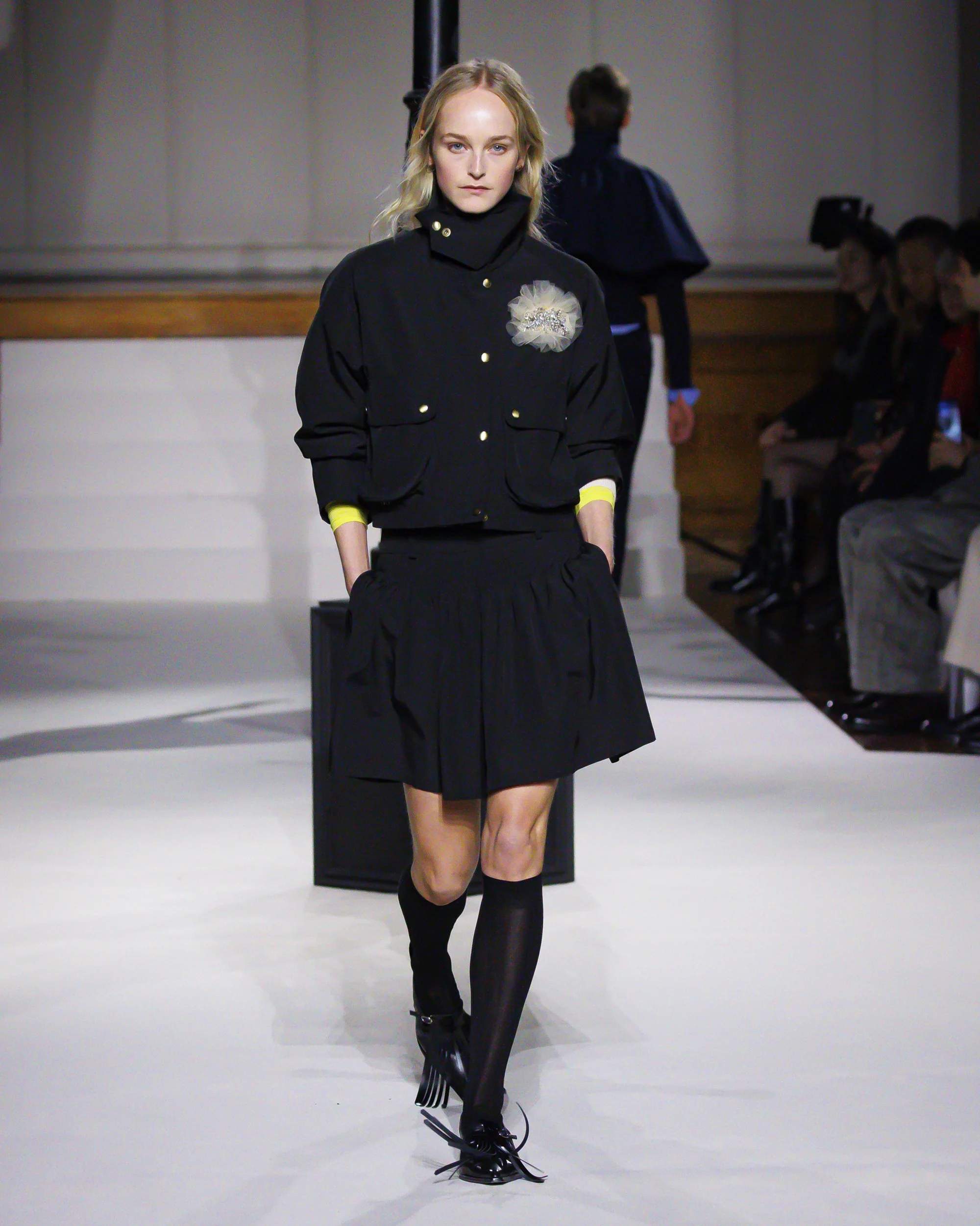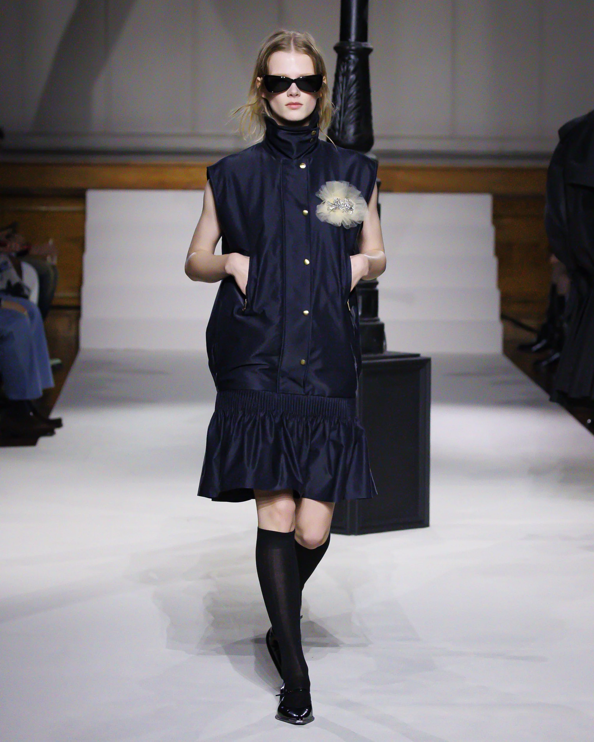 The answer lies in nuance. Accessories carry a sense of wit—corsage details and insignia embroidery blur the line between uniform and individuality. There’s a quiet theatricality at play, one that doesn’t demand attention but rewards observation. Much like the Night Climbers themselves, the collection thrives in the margins.