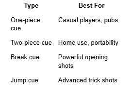 A pool cue is not just a stick—it’s an extension of your skill. The right cue can significantly improve your control and accuracy.