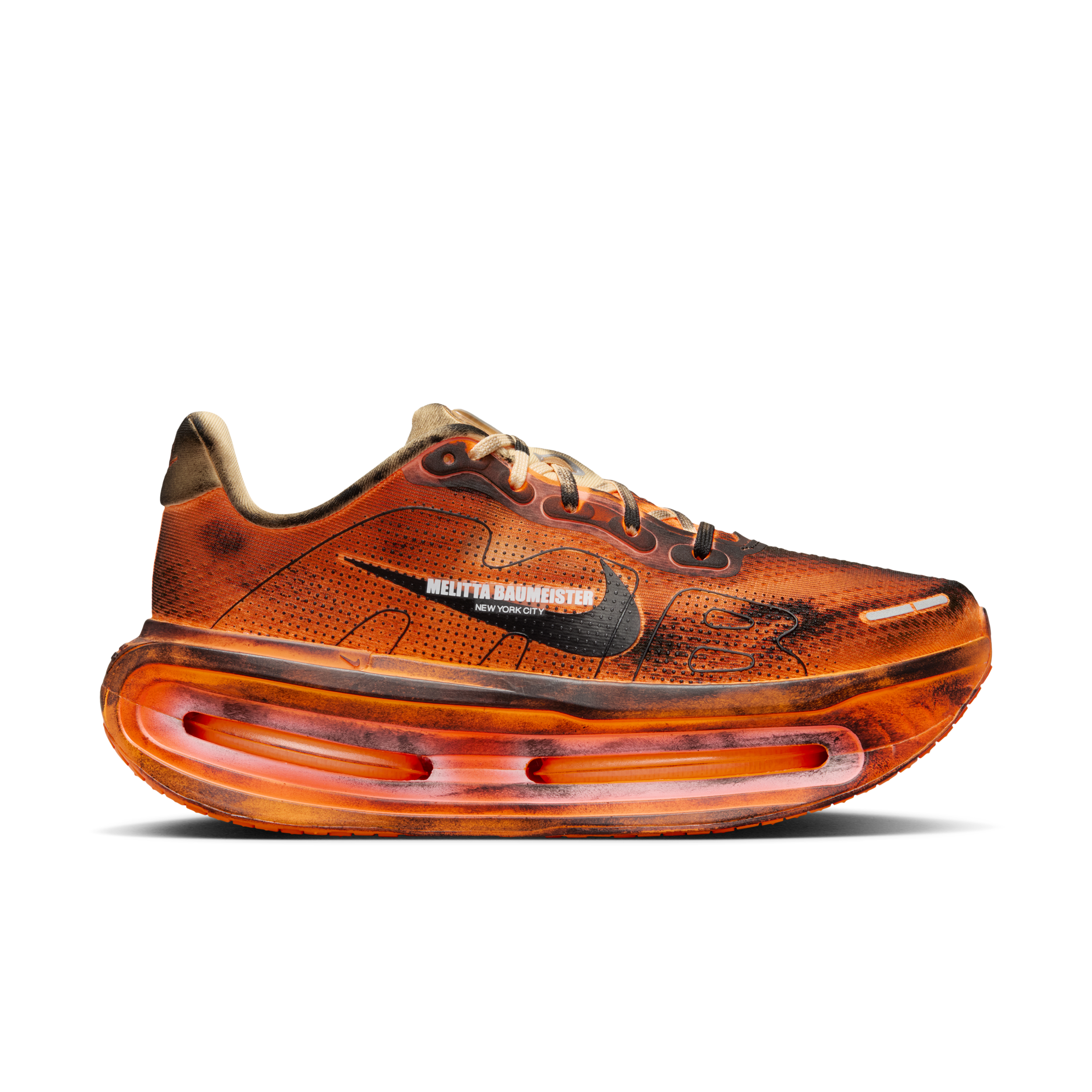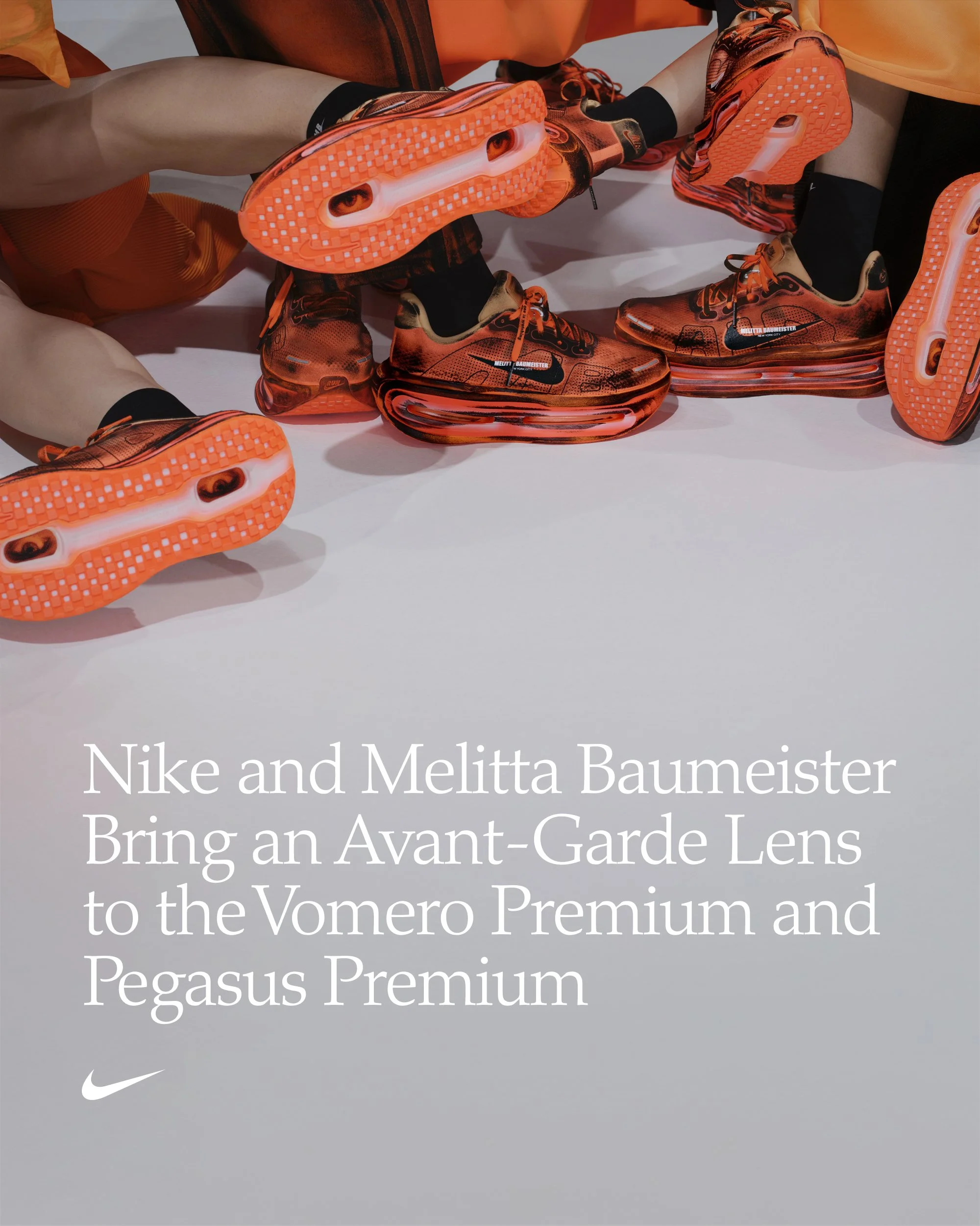 If the Moon Shoe represents Nike’s origin story, its latest collaboration with Melitta Baumeister signals where performance is headed. Reimagining the Nike Vomero Premium and Nike Pegasus Premium, Baumeister introduces an avant-garde perspective that reframes running as an act of personal expression rather than public performance.
