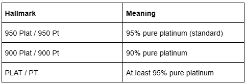 Hallmarks are the most reliable way to ensure authenticity. Purity is measured in parts per thousand; for example, "950 Plat" means the piece is 95% pure platinum.