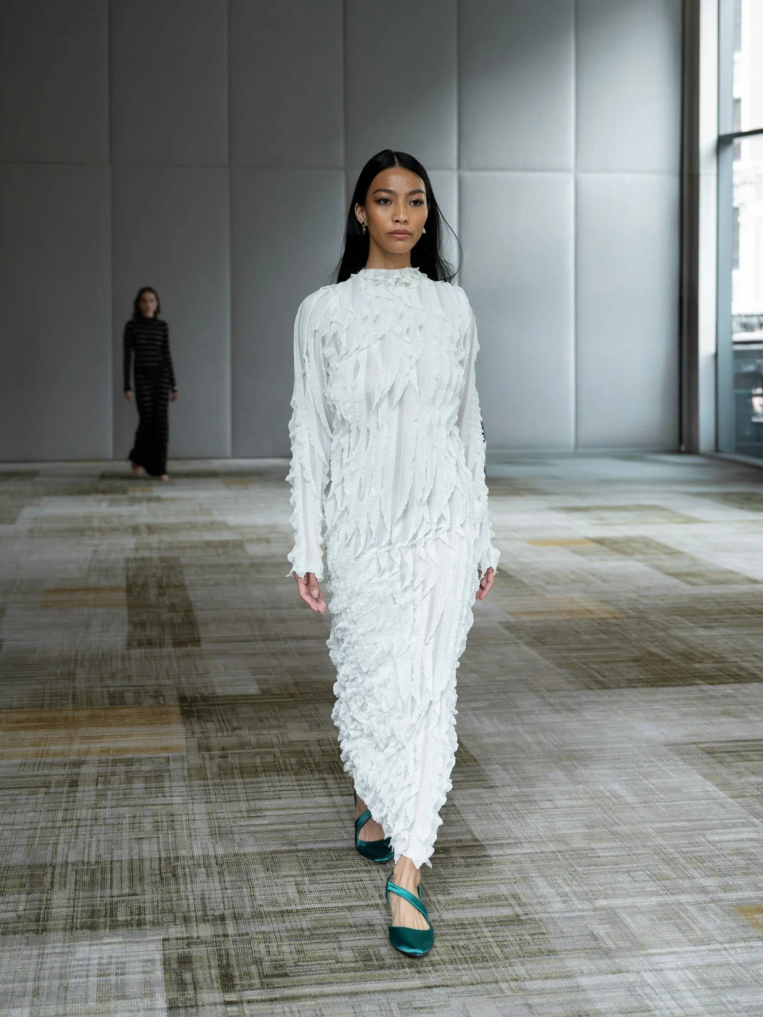 Her winter 2026 show at New York Fashion Week was inspired by abstract artist Willem de Kooning, and emphasized color, texture and fluidity. Her designs blend architectural precision with femininity. By focusing on custom-made garments Floresca’s business is inherently sustainable, just the way she likes it. She feels fashion designers carry a responsibility to apply environmentally conscious practices in their work.