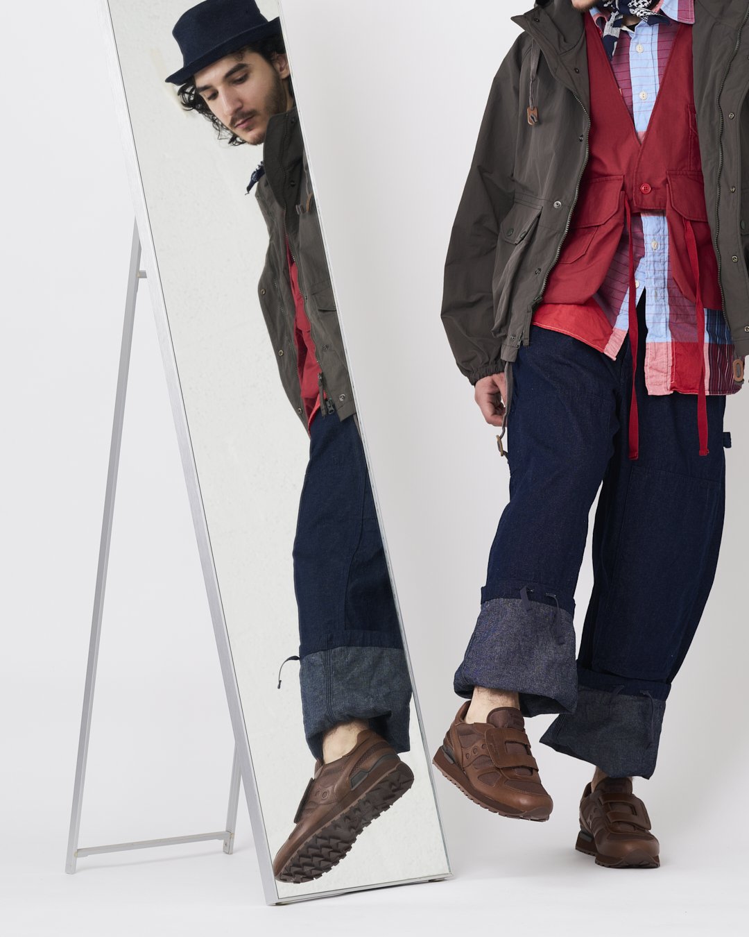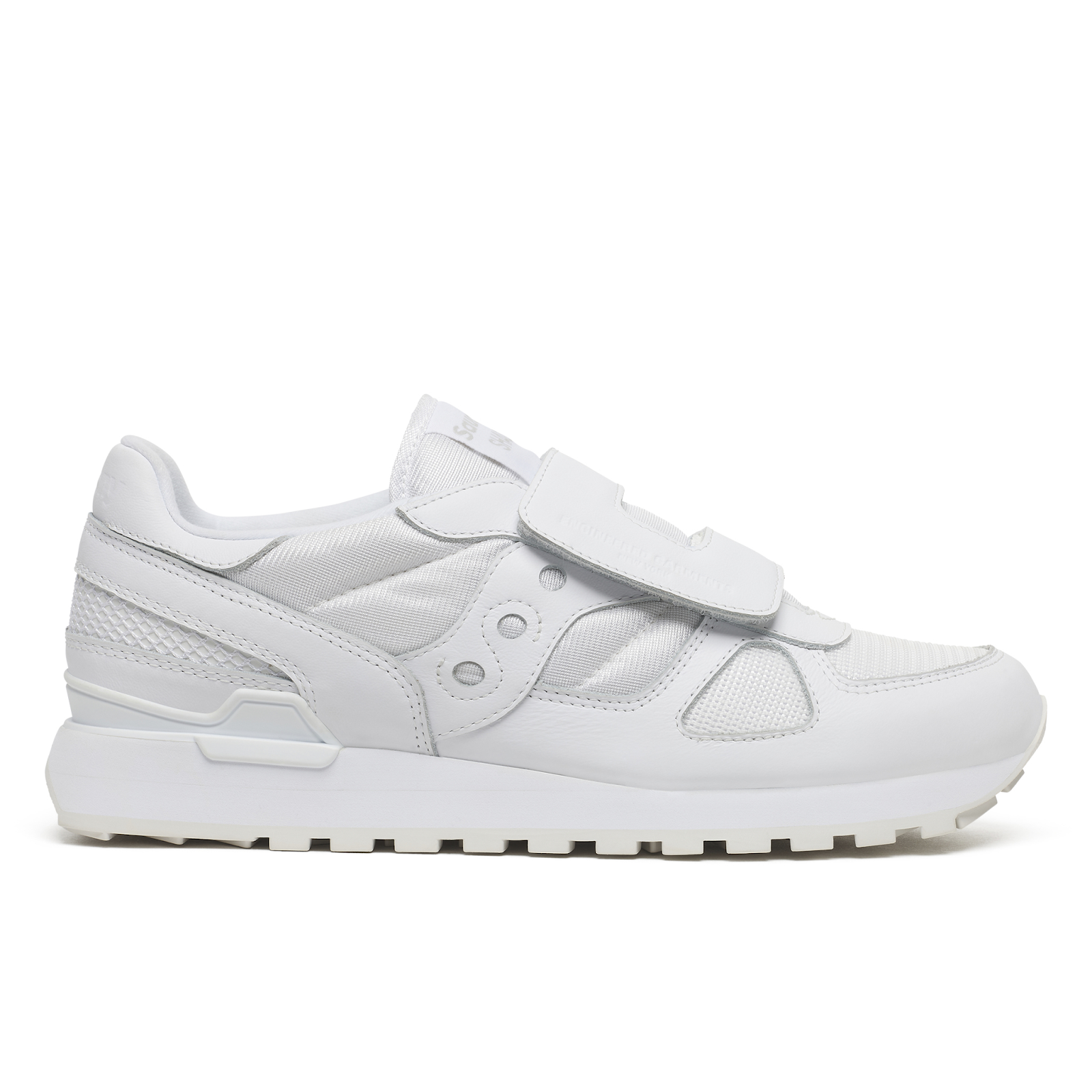 This reinterpretation draws from an unlikely source within Saucony’s own archive—a children’s model, the Jazz Hook & Loop—where the merged strap was originally conceived for practicality. In Suzuki’s hands, that same feature becomes a design thesis. The adaptation is neither ironic nor nostalgic; instead, it underscores a recurring theme in contemporary menswear: the elevation of the everyday through thoughtful reduction.