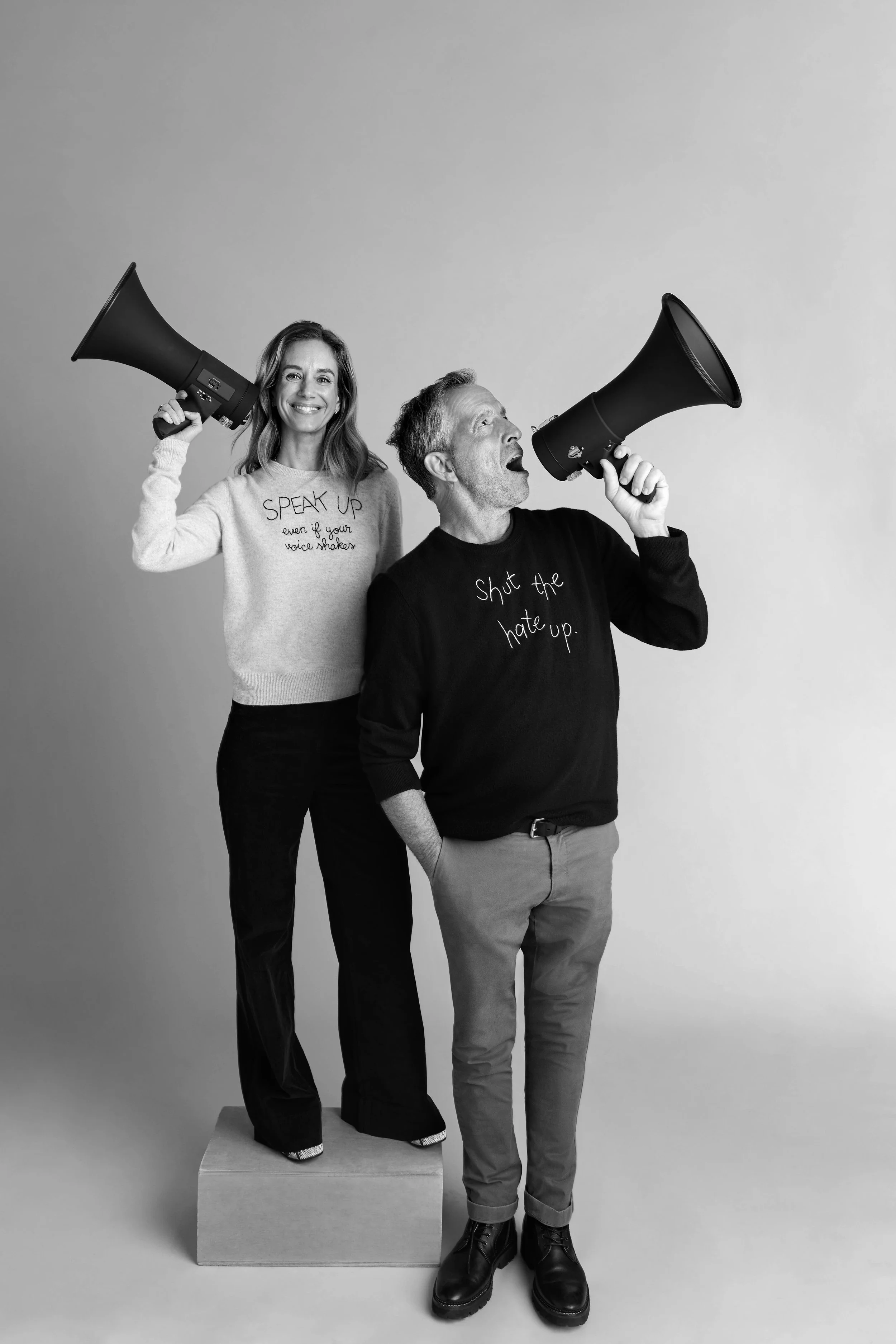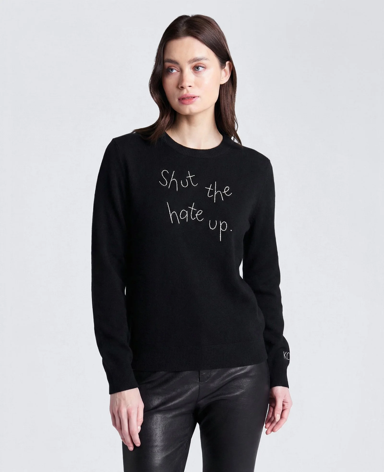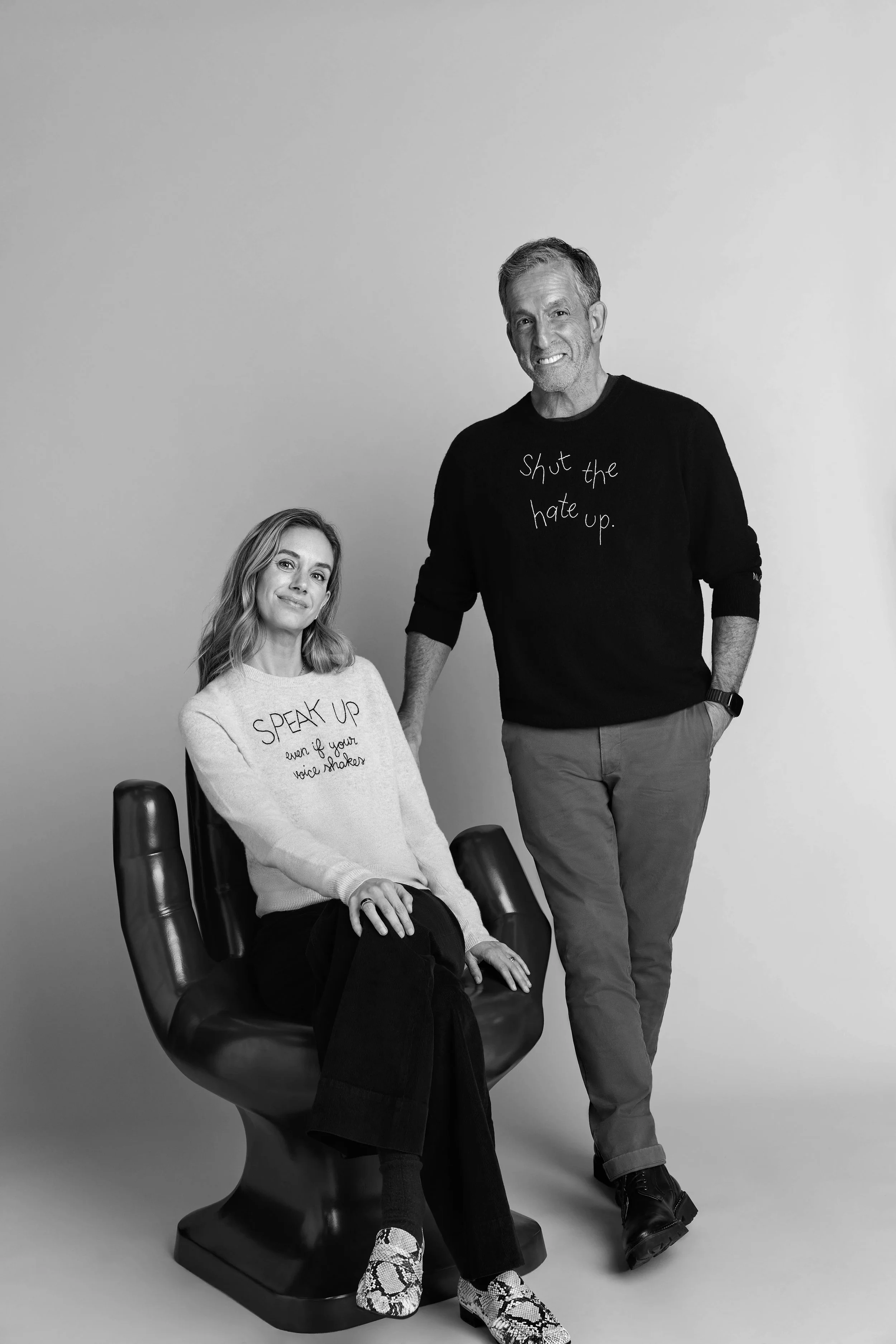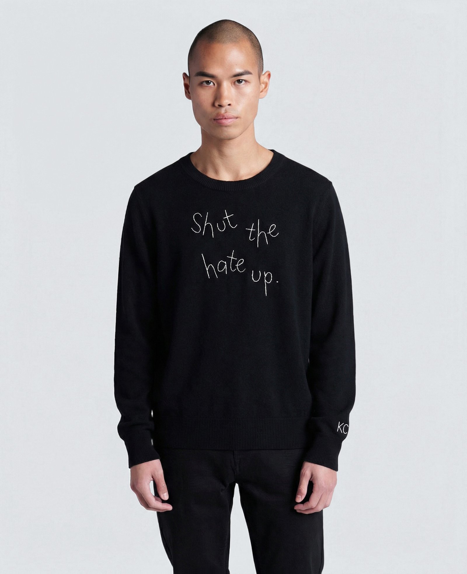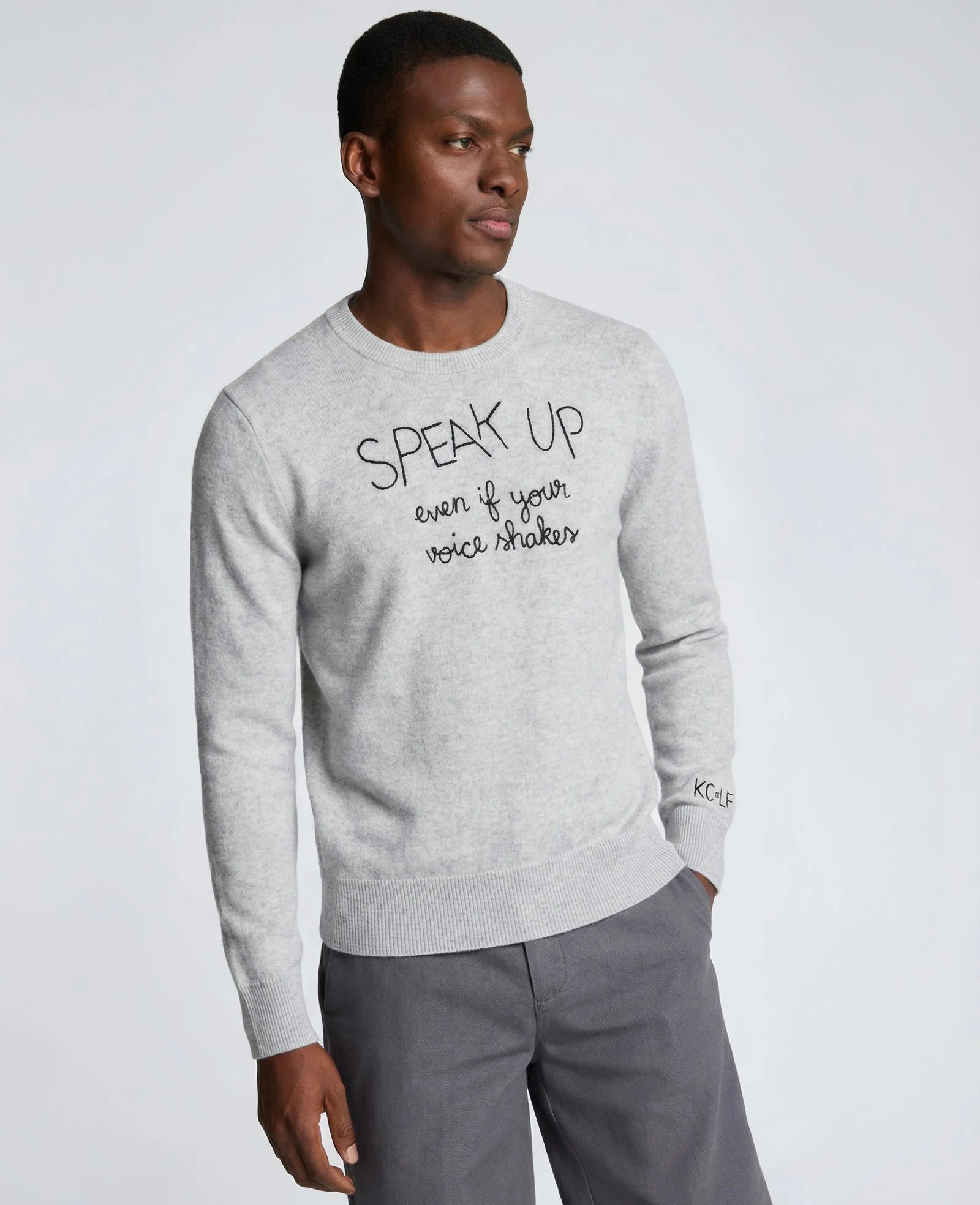 The capsule includes sustainably sourced Maxine sweaters in black and white, unisex cashmere sweaters in black, white, and grey, and unisex tees in black and white—each piece designed to function as both wardrobe staple and cultural prompt. In merging Lingua Franca’s hand-crafted sensibility with Kenneth Cole’s advocacy-driven ethos, the collection underscores a shared belief: what we wear can—and should—reflect what we stand for.