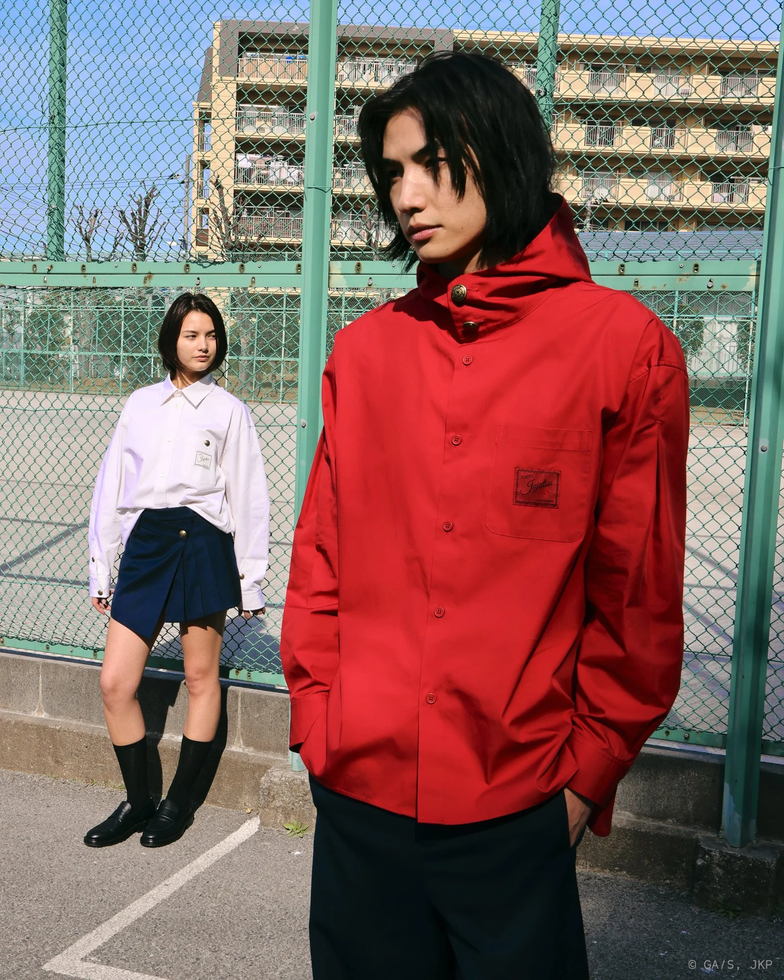 The collection’s uniform sets, priced between $110 and $195, are rendered in wool-blend fabrics that echo the disciplined aesthetic of Jujutsu High. Rather than replicating costumes, the garments interpret the institutional rigor and subtle hierarchy embedded within the series.
