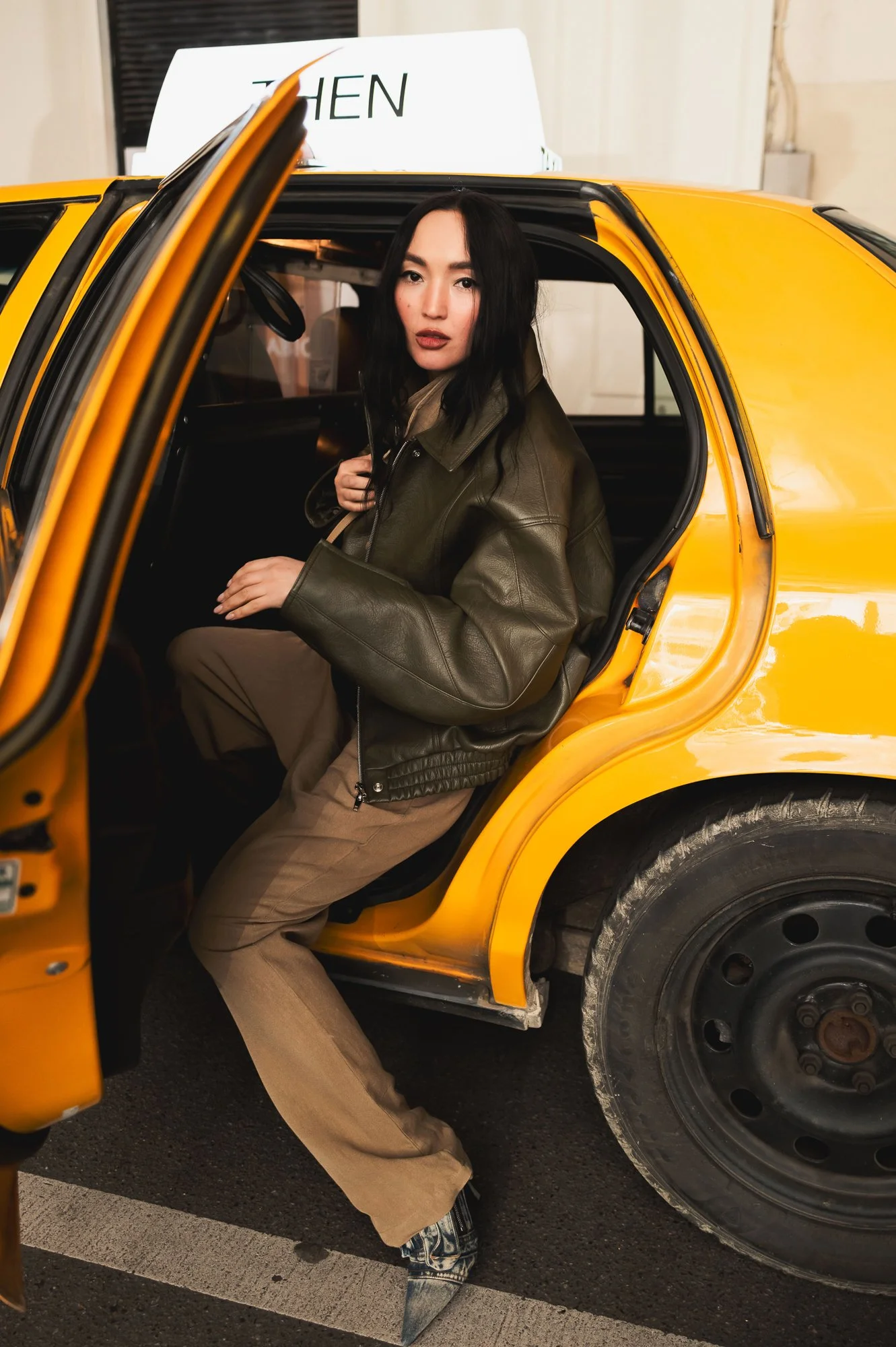 The brand also used the anniversary to introduce a playful nod to its New York roots. A classic yellow taxi circulated through the Paris Fashion Week circuit, transporting guests between shows while doubling as the stage for a backseat interview series hosted by Hanan Besovic of Ideservecouture, capturing candid conversations with fashion insiders along the way.