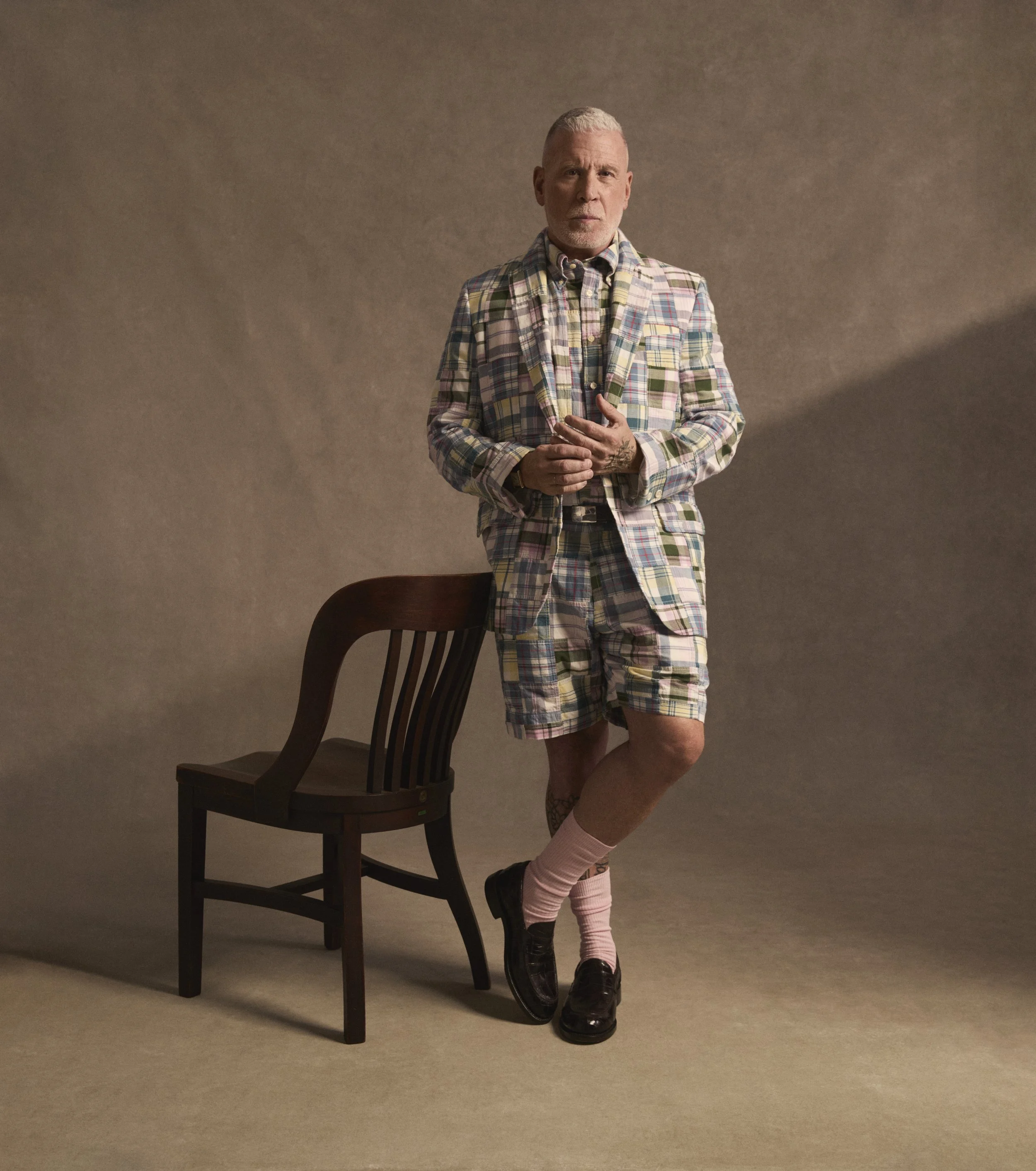 Wooster, long synonymous with modern tailoring, pushes further. Known for precise silhouettes with irreverent twists, he treats tradition as raw material—blazers styled with shorts, suiting reworked into kilt-like forms. “When I think of Brooks Brothers, I think of classic—but it’s always my version of classic,” he says. His approach underscores the campaign’s thesis: endurance is earned when garments invite reinterpretation.