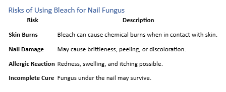 Bleach is not a first-choice treatment for nail fungus due to safety concerns. It may help in mild, early cases when diluted, but professional treatments are far safer and more effective.
