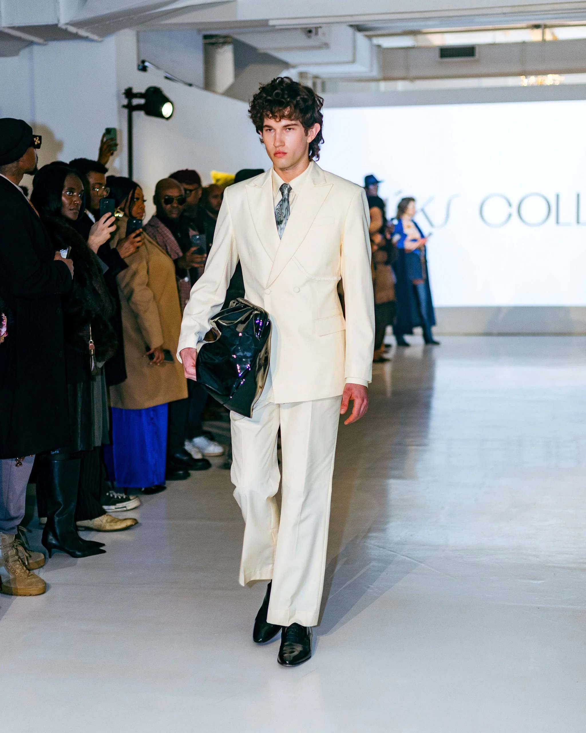 The philosophy did not remain conceptual. It was embedded directly into the garments. The FW26/27 collection introduced modular silhouettes and adaptive tailoring that reflected Collins’ belief in identity as fluid rather than fixed.