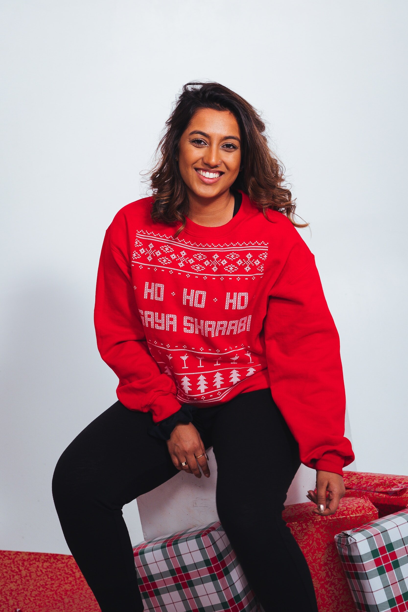 Opt for comfortable yet festive clothing like Christmas sweaters and wrap dresses for casual events.