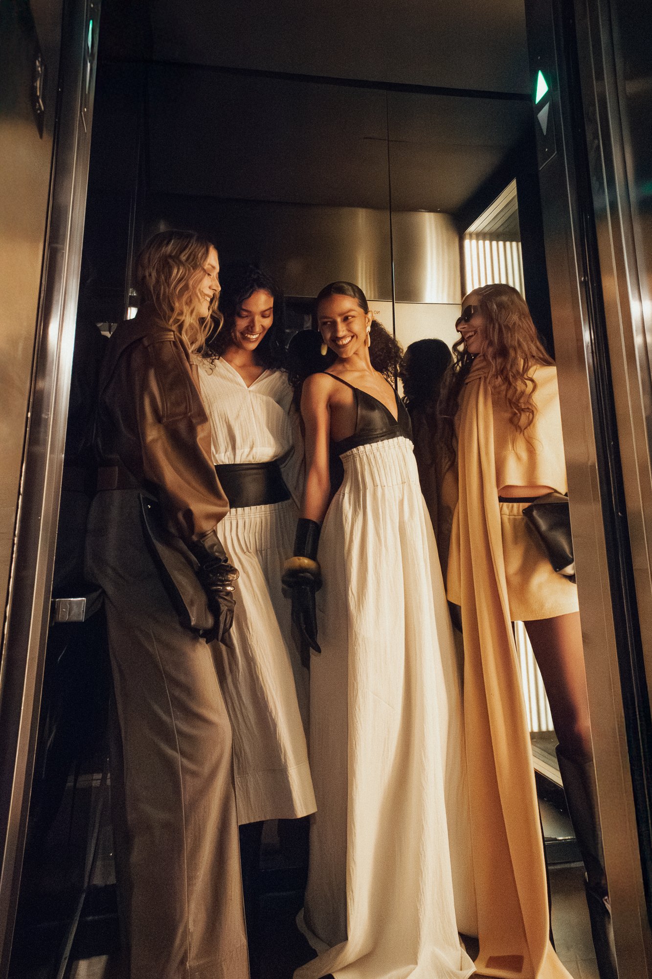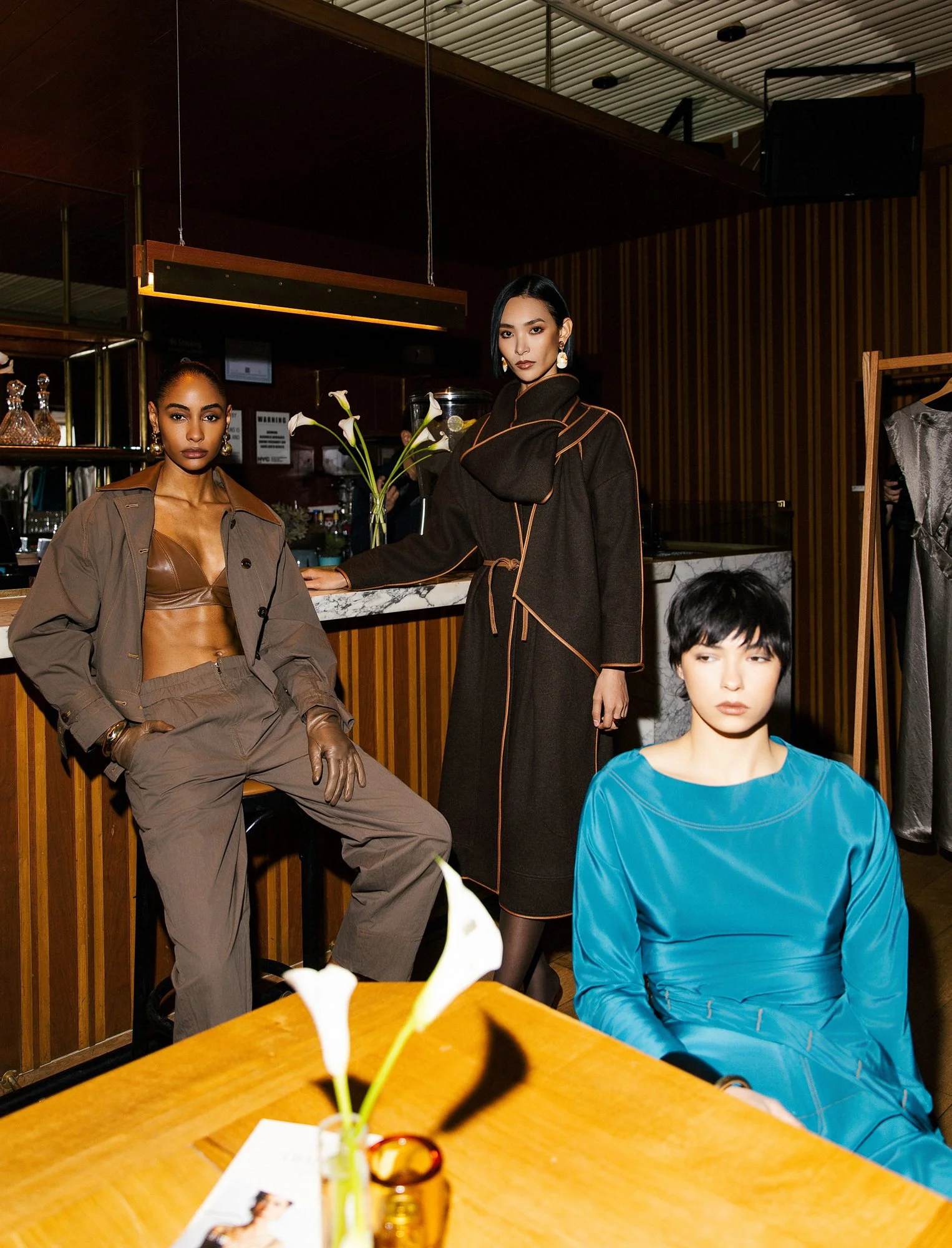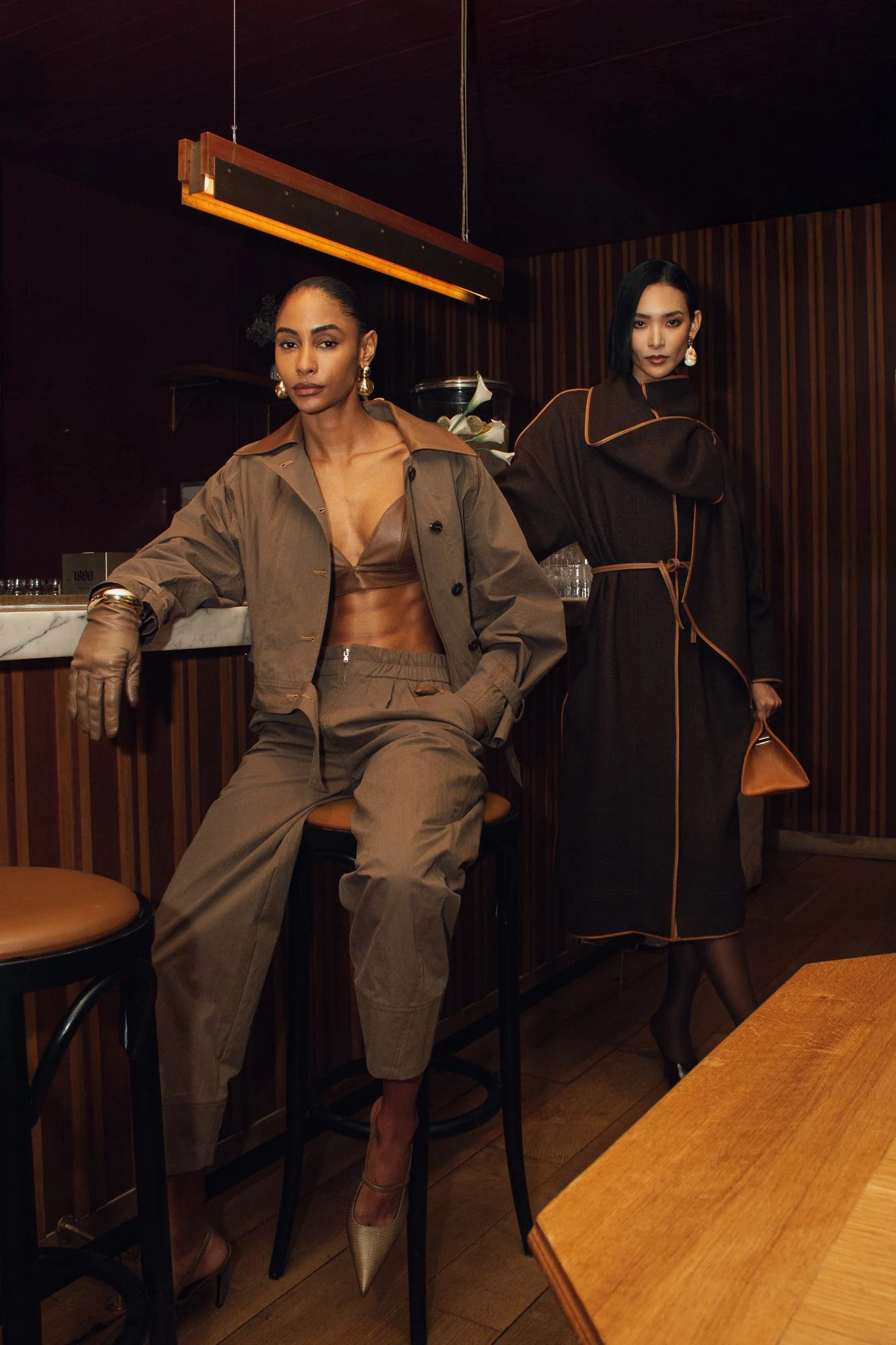 Behind the scenes, the presentation echoed this intentionality. Styling by David Taveras complemented the collection’s architectural restraint, while hair by Aveda and makeup by New York Make-Up Academy maintained a natural, elemental finish. Jewelry by Dinosaur Designs introduced organic texture, reinforcing the theme of raw materials shaped into enduring form. Even the venue choice felt deliberate—intimate, grounded, and immersive.