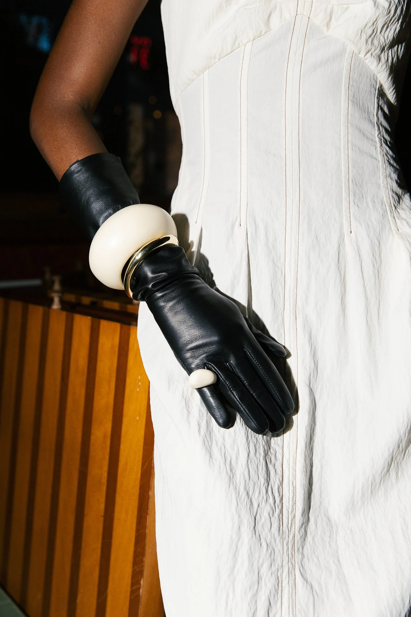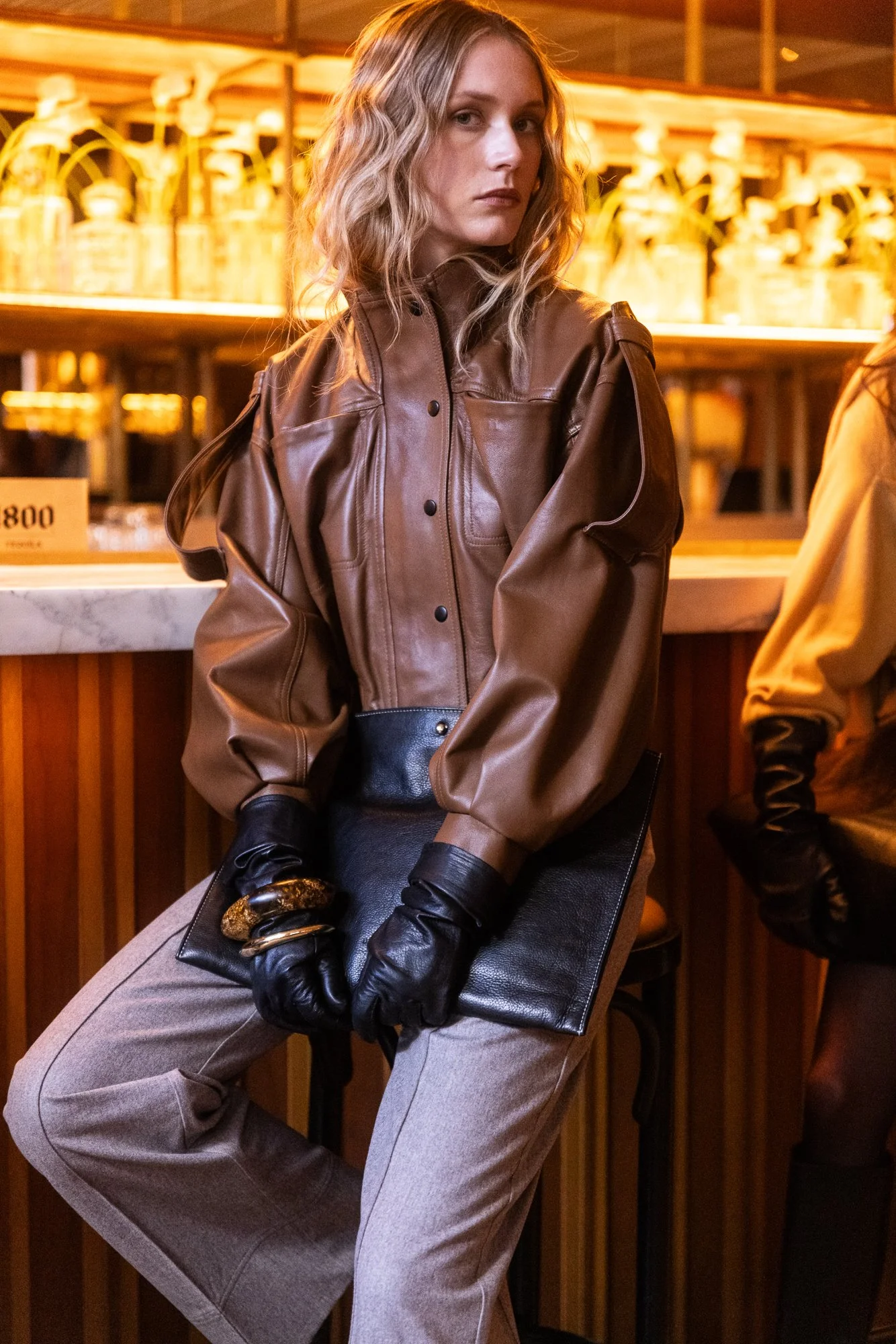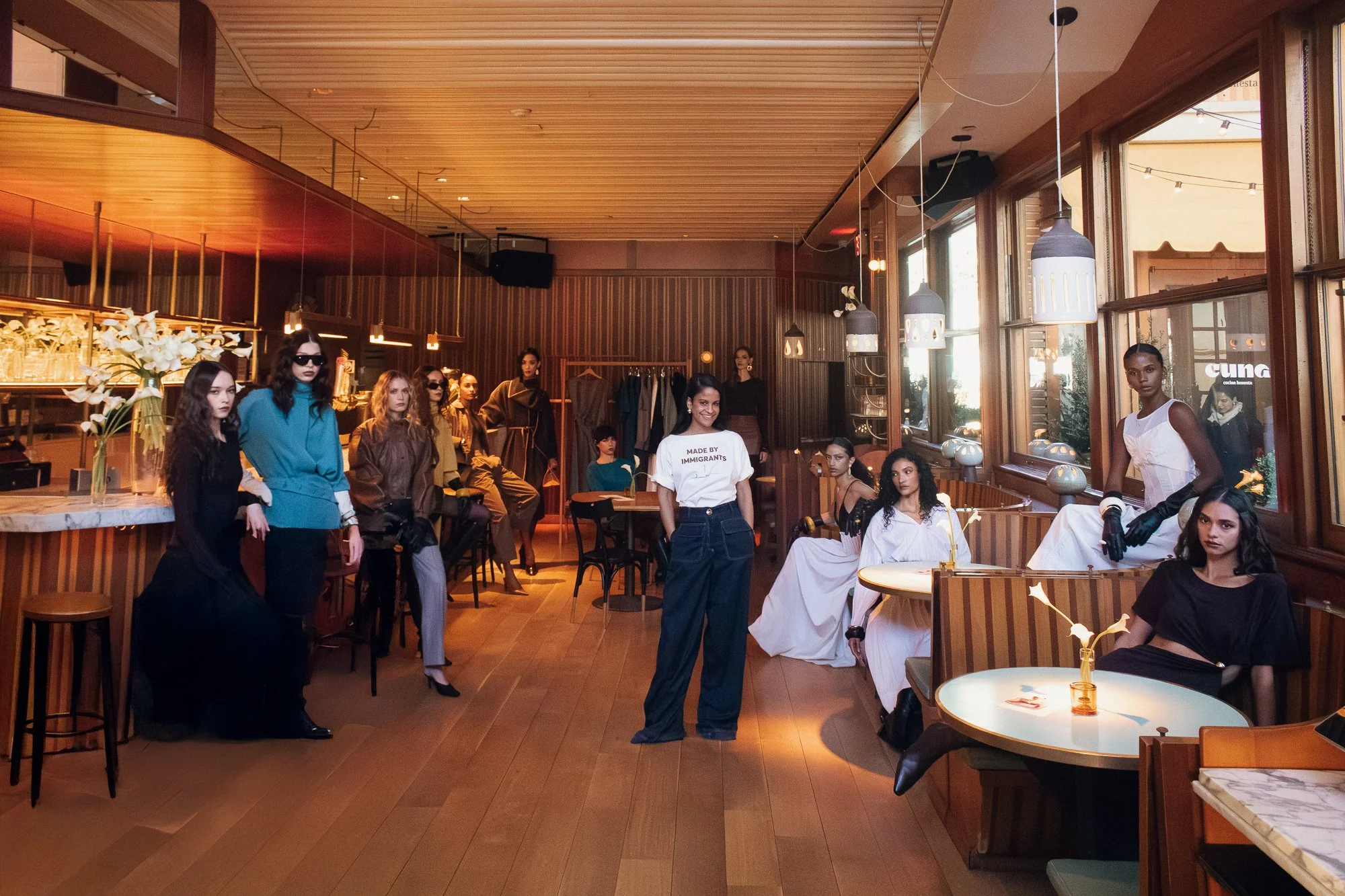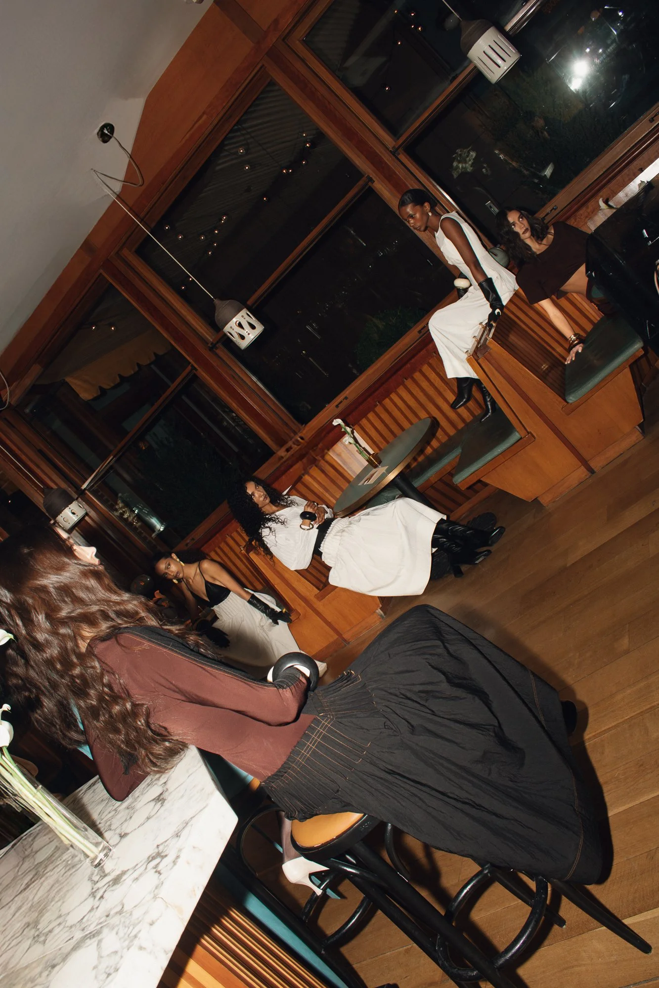 Behind the scenes, the presentation echoed this intentionality. Styling by David Taveras complemented the collection’s architectural restraint, while hair by Aveda and makeup by New York Make-Up Academy maintained a natural, elemental finish. Jewelry by Dinosaur Designs introduced organic texture, reinforcing the theme of raw materials shaped into enduring form. Even the venue choice felt deliberate—intimate, grounded, and immersive.