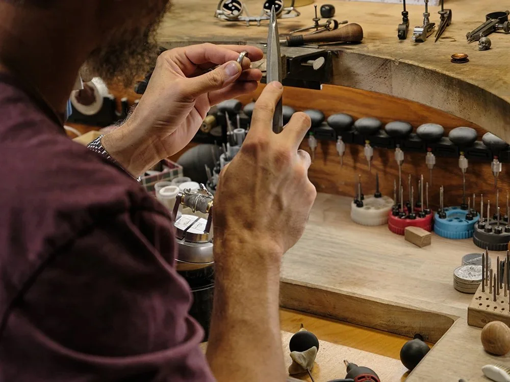 At the heart of Folium is founder and CEO Myles Ryan, an award-winning designer, master goldsmith, and GIA-certified gemologist based in Northern California. Ryan’s work is defined by meticulous hand engraving, architectural clarity, and a deep reverence for metalsmithing traditions as living, evolving practices. His path to goldsmithing began early, shaped through mentorship that fostered an intuitive relationship with metal and form. His training spans studies in Eurythmy and repoussé in Switzerland, followed by formal gemological education at the Gemological Institute of America (GIA). A formative period sourcing rare stones and refining technical precision within an atelier environment further honed an approach grounded equally in discipline and intuition.
