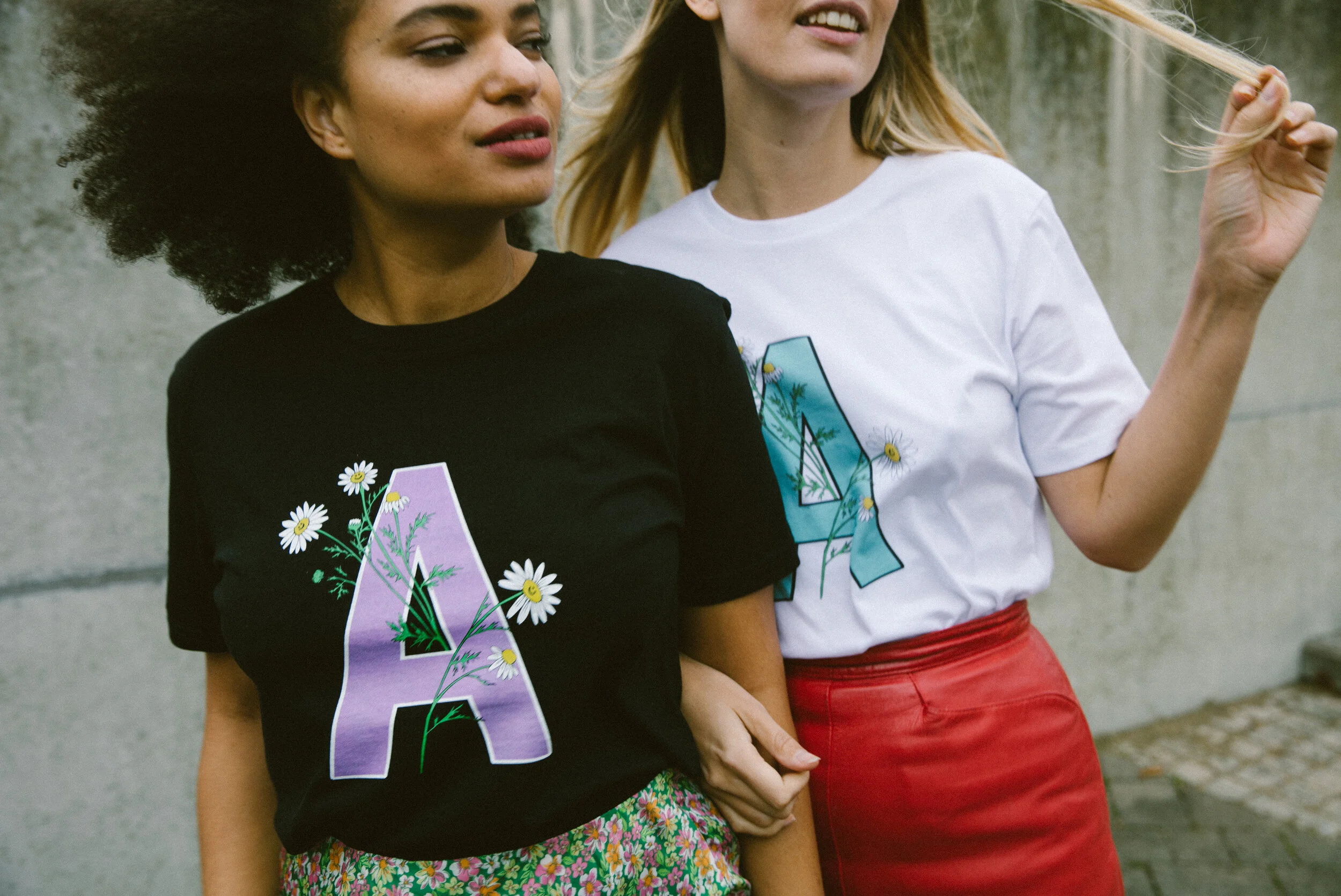 The first drop is a t-shirt with the letter A covered in daisies to symbolize the brand’s launch. They’re priced at £35, roughly $48.
