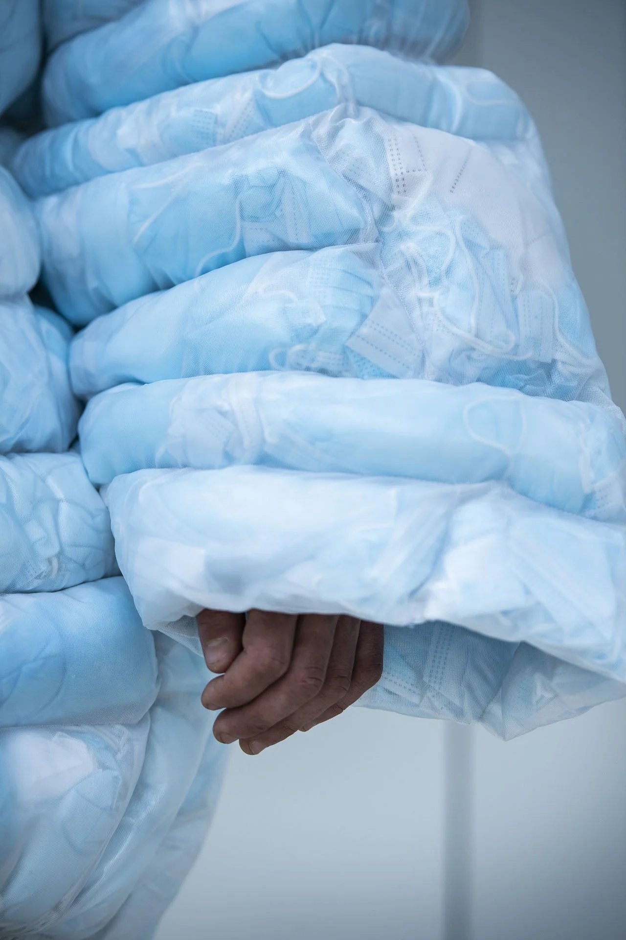 In Iceland, a sustainable designer and future-oriented multidisciplinary artist, Tobia Zambotti, took to his lab to find a way to utilize the mask waste he found there. He established his studio Atelier Tombia Zambotti in 2019, post a career working in mainland Shanghai, China. He was a designer for the awarded interior design firm, Alberto Caiola Studio. As a by-product, Zambotti was subject to the air quality of the region and wasn’t satisfied as a resident; Japan and its residents have worn masks for years as the air would move east over the Island country. Zambotti moved to Reykjavik to begin his journey to upcycle and recycle existing ‘waste’ to create art pieces.