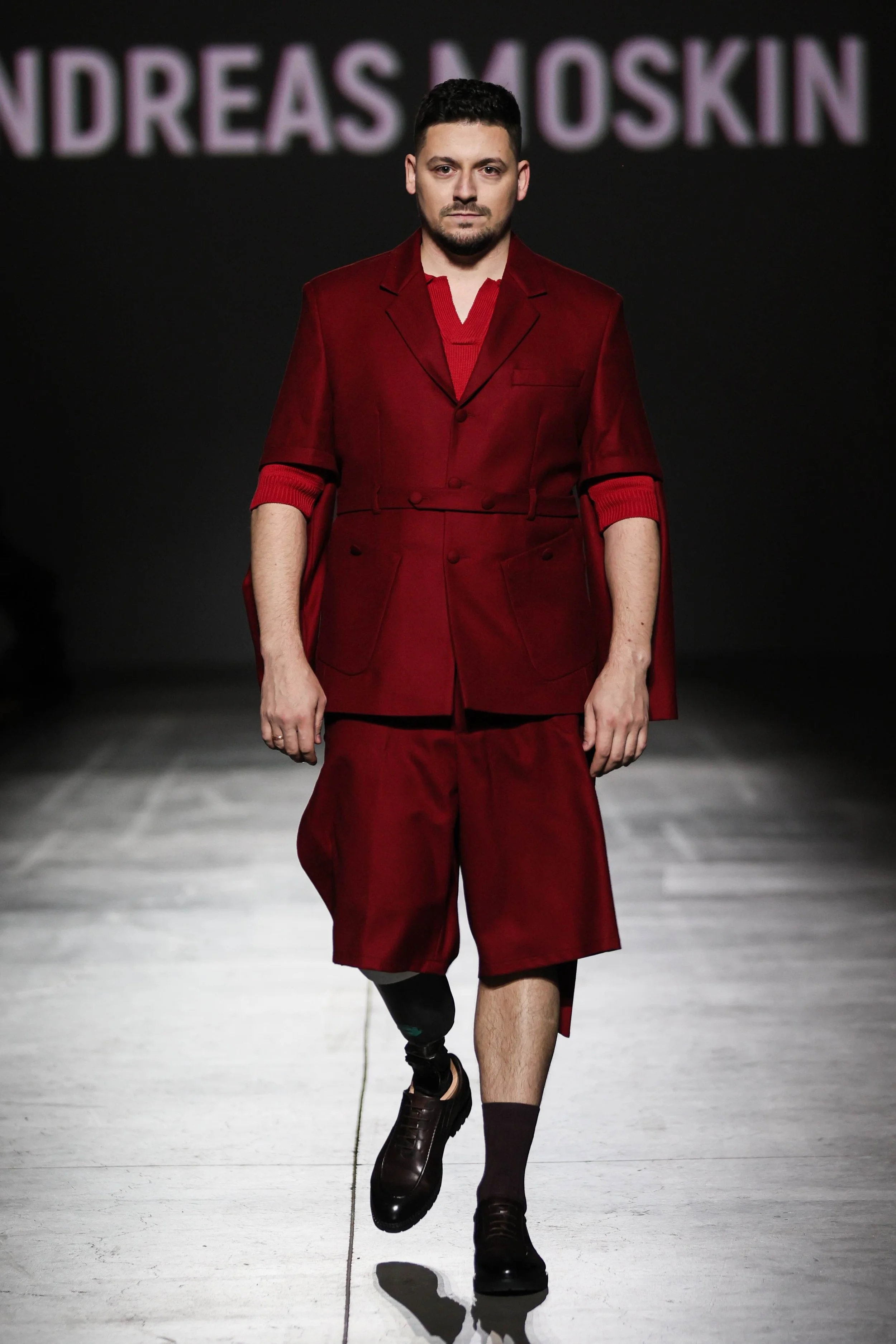 In a groundbreaking move, Andreas Moskin introduces adaptive designs for men with prosthetic arms and legs, featuring invisible zippers for effortless wearability.