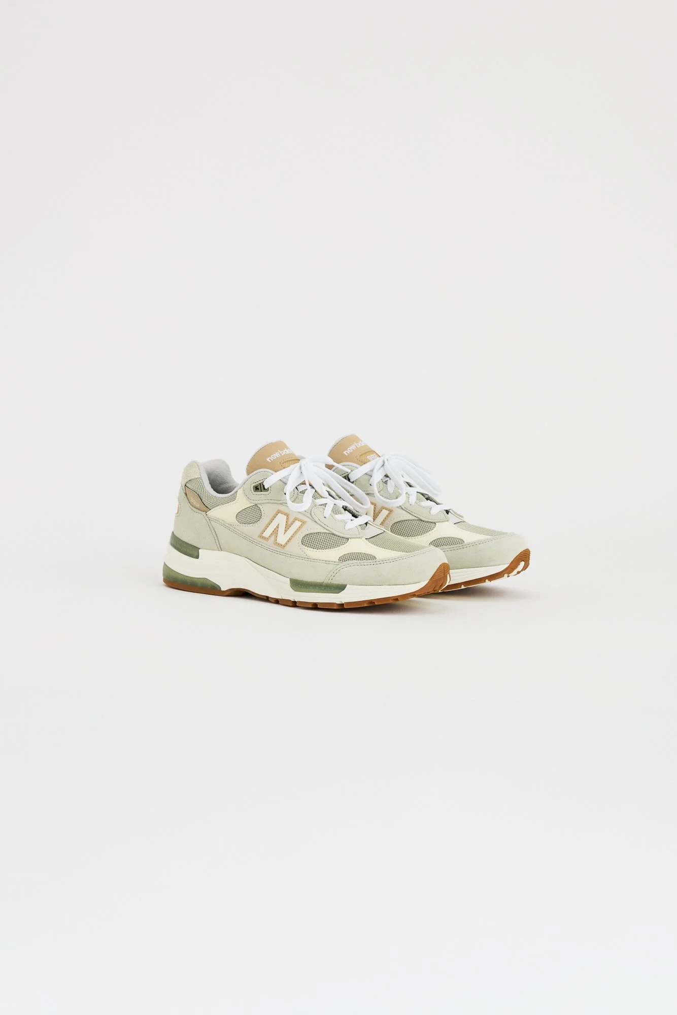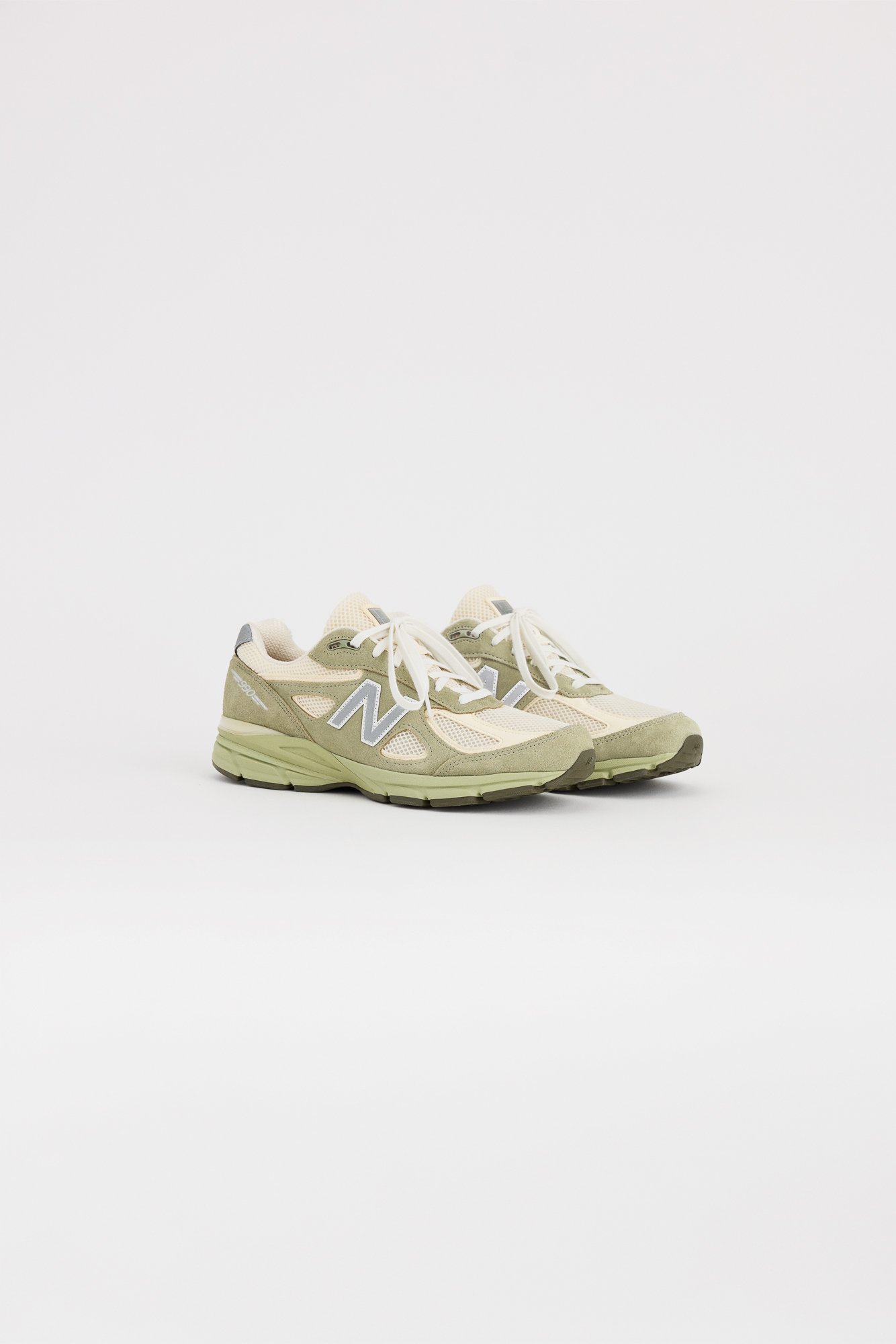 Drop One opens with the 990v4 and 992 in olive-driven hues—Olive Leaf, Light Olive, Olivine—grounded by neutral accents like Permafrost and Incense. It’s a controlled start: earthy, transitional, wearable. Apparel mirrors that restraint with black and grey staples—crewnecks, hoodies, and sweatpants that function as uniform rather than trend.