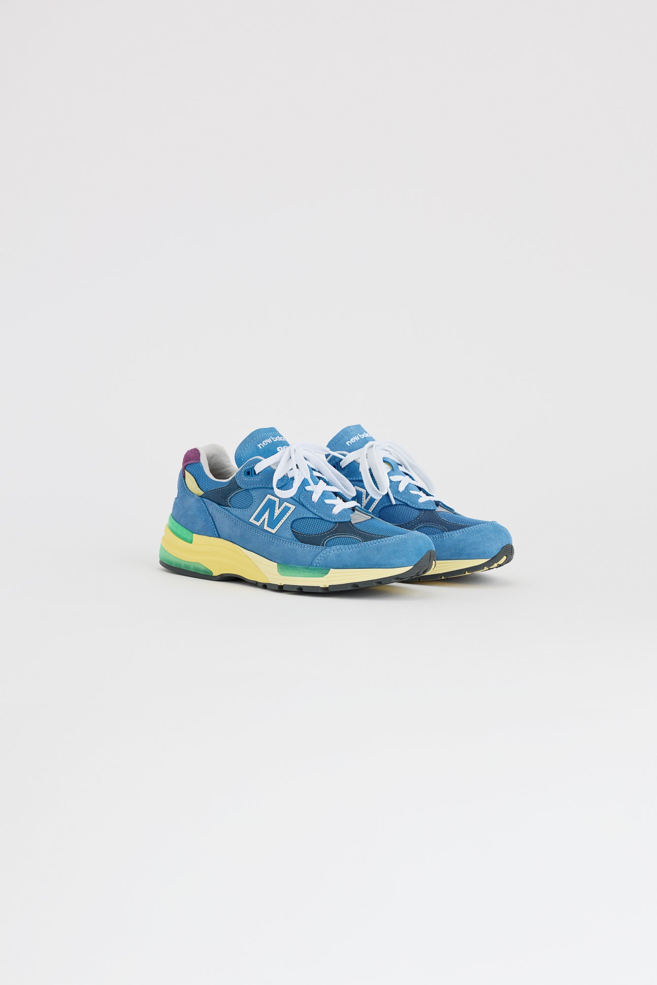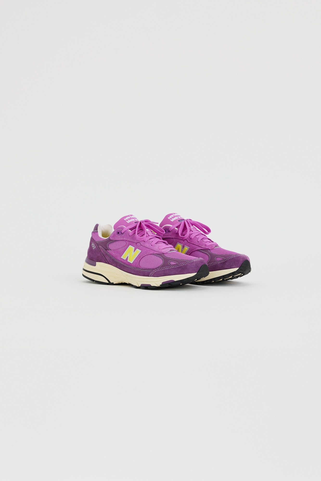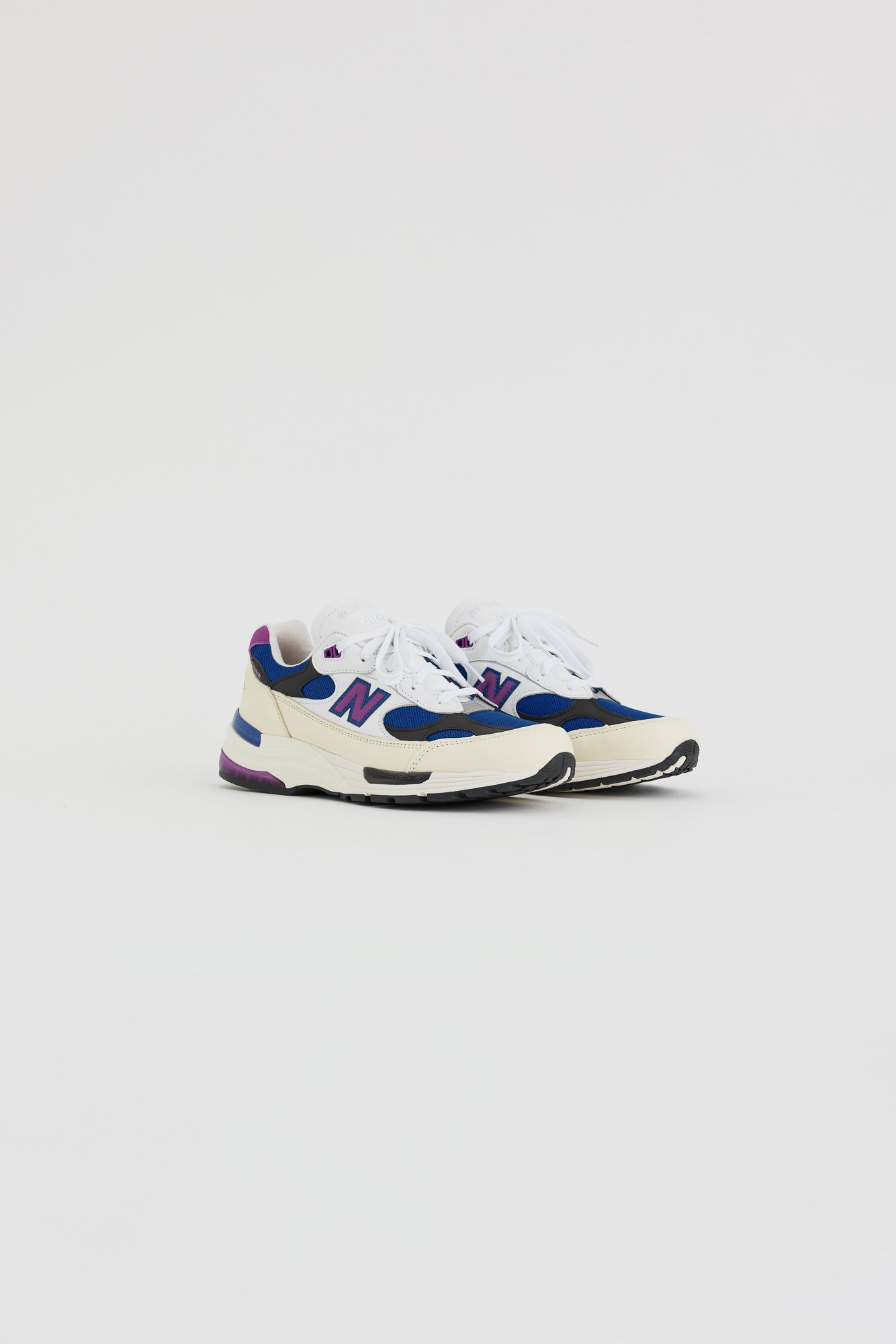 Drop Three revisits the 992 through a classic running lens—crisp white leather offset by Team Royal blue and Purple Fuchsia. The narrative expands into womenswear with the introduction of a pleated skirt in bright and neutral hues, subtly reframing the Made in USA line as less gendered and more lifestyle-oriented.
