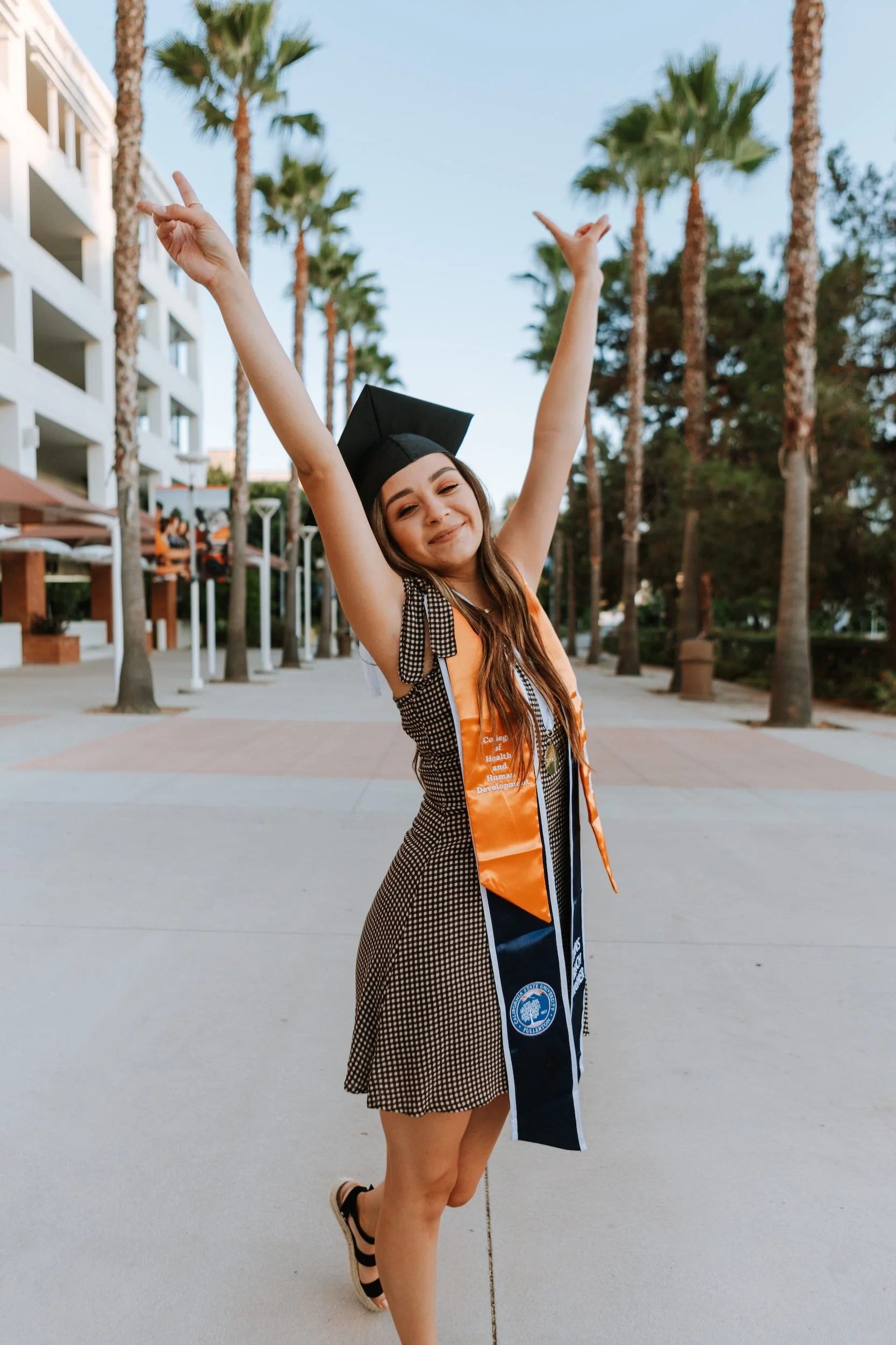 #5. Red - If you want to appear confident, red is the color for you – and given that it is a symbol of strength, it will represent your hard work and determination throughout college to reach graduation day. It’s a striking choice that is certain to stand out but be sure to keep shoes or accessories simple to avoid any color clashing.