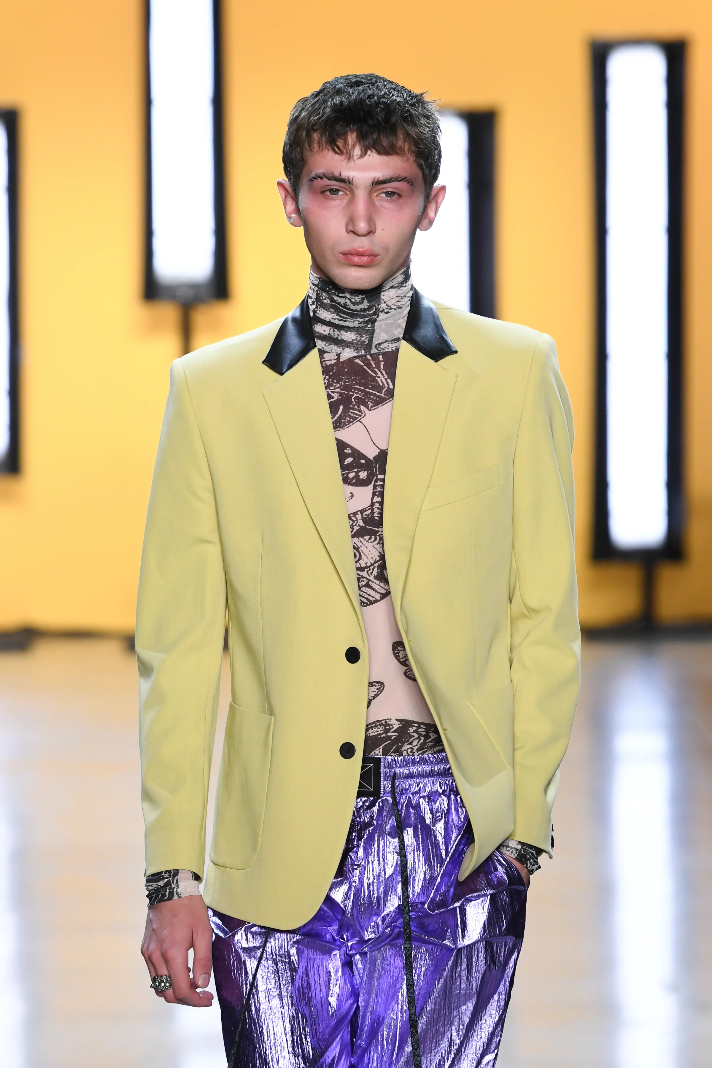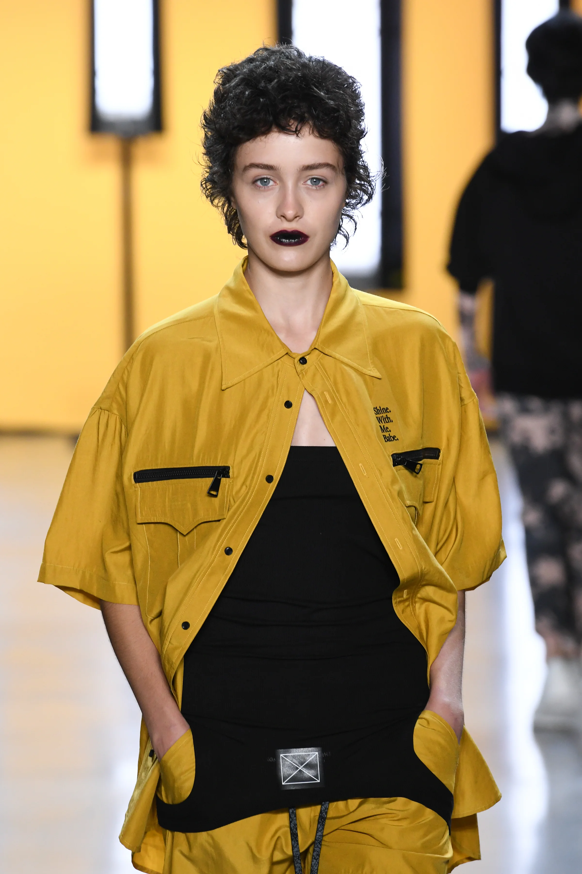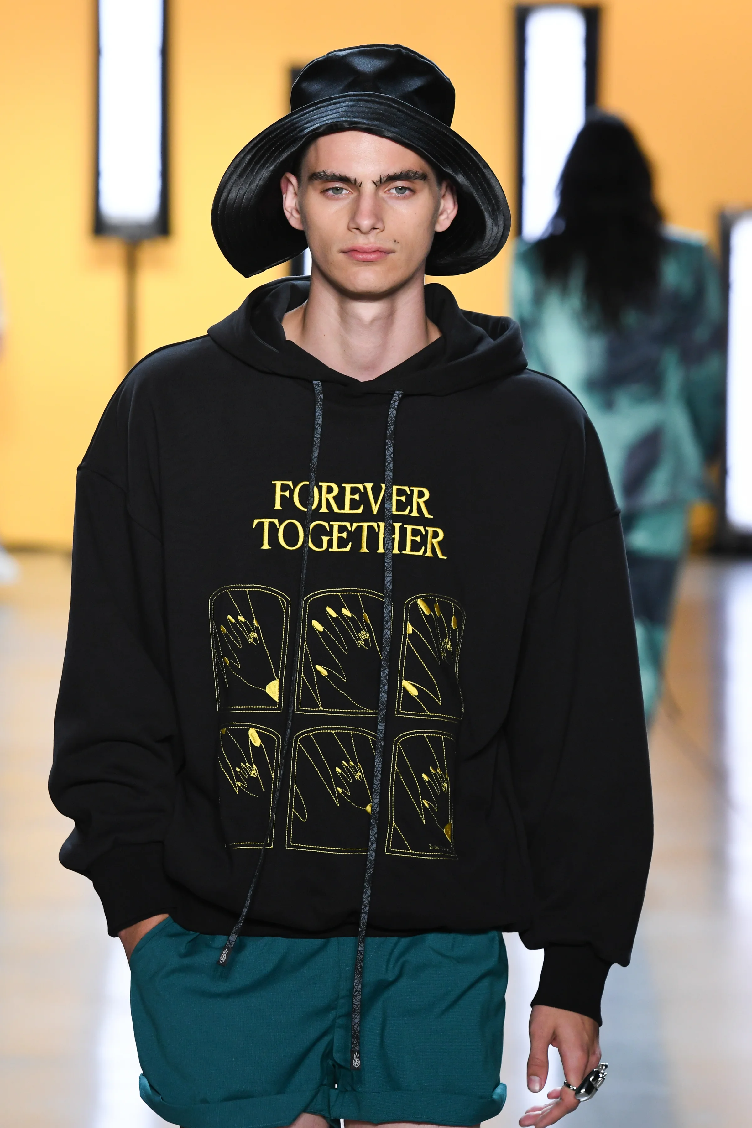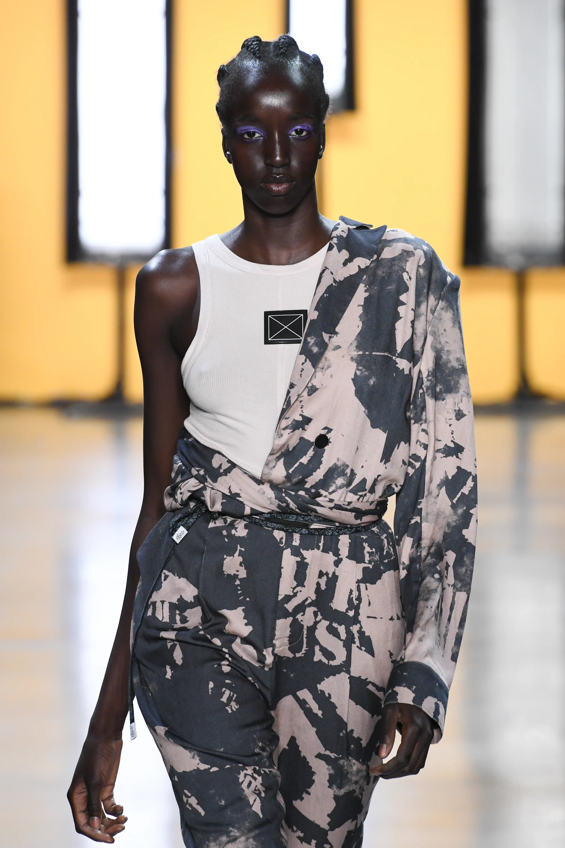 Dirty Pineapple’s runway show this New York Fashion Week was one that reflected what they call Recycled Love. To objectify one’s self, this show represents the destruction of ego for the purpose of feeling; loving. Body print makes collage imagery of various body parts. Layered print gives the ideas of different skin, and tie die made of words of things lost within relationships. An eclectic attention to detail from the designer’s concept.