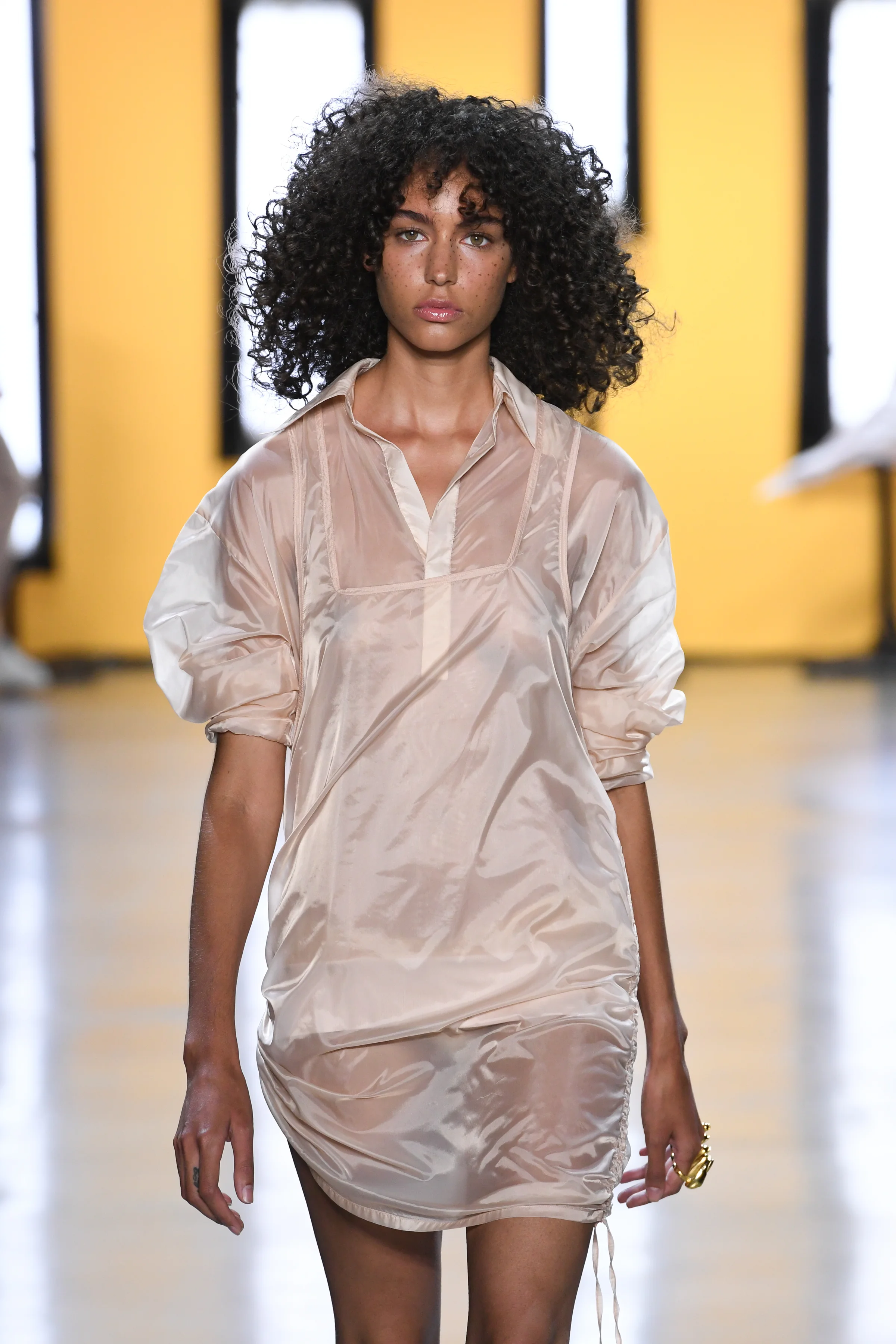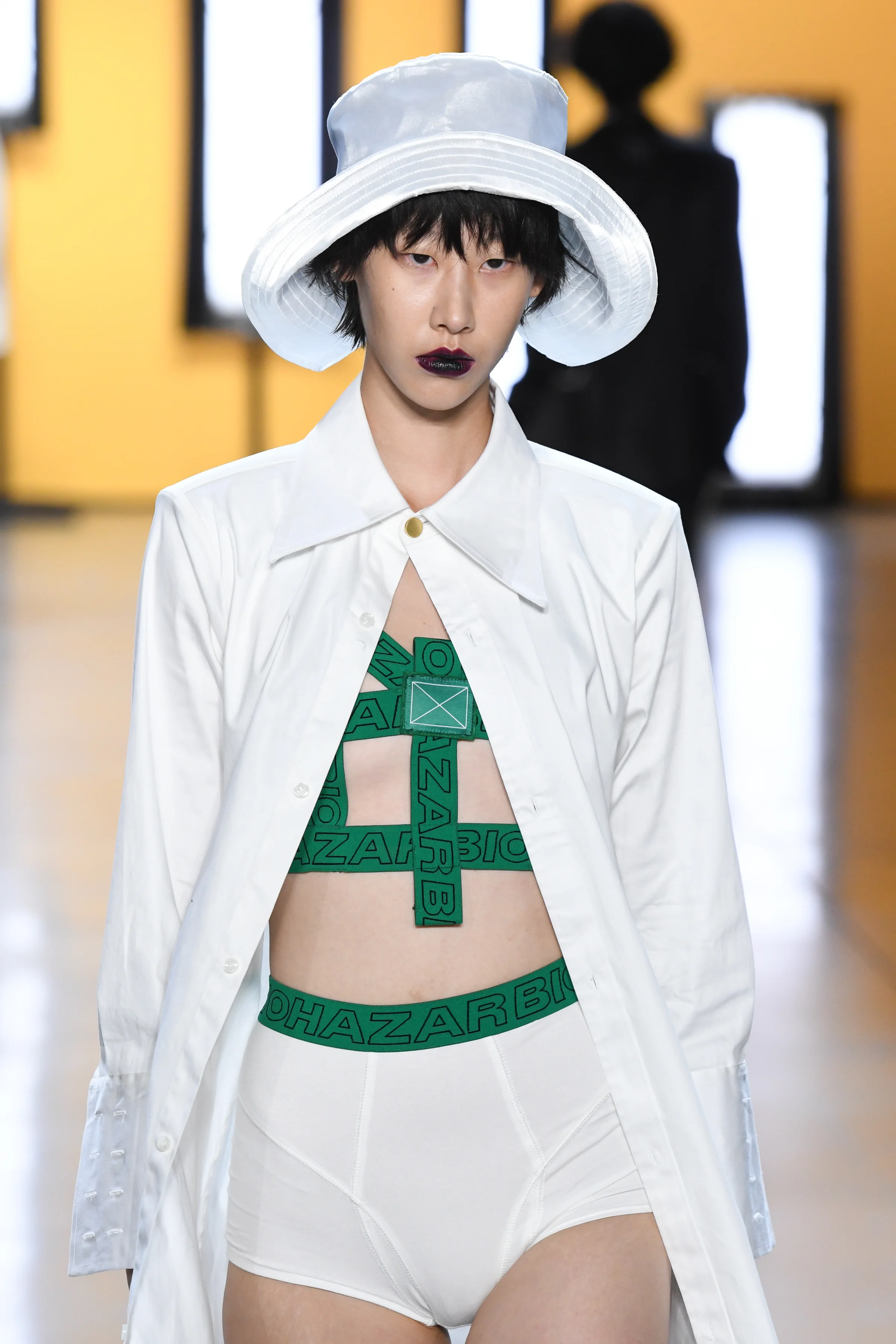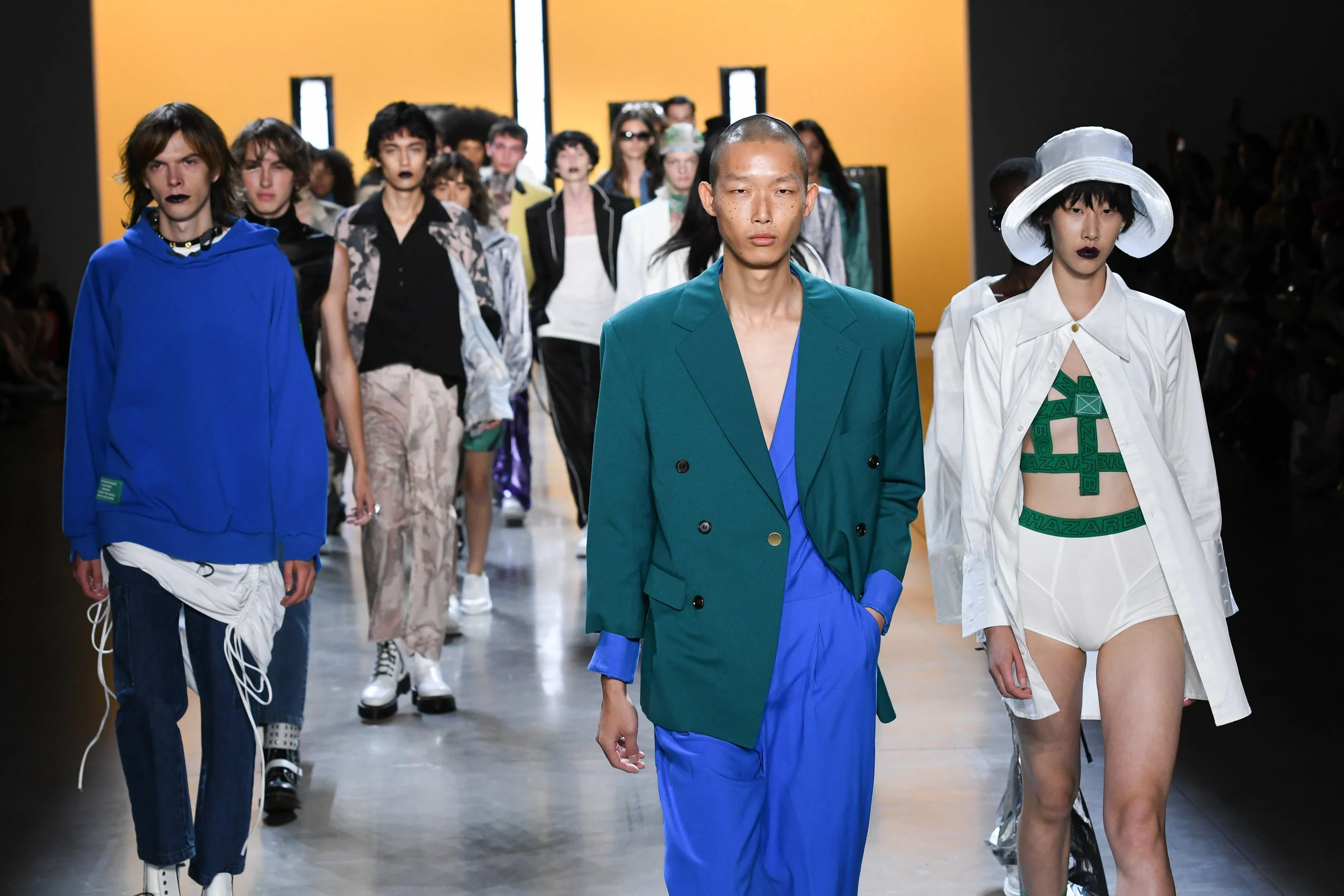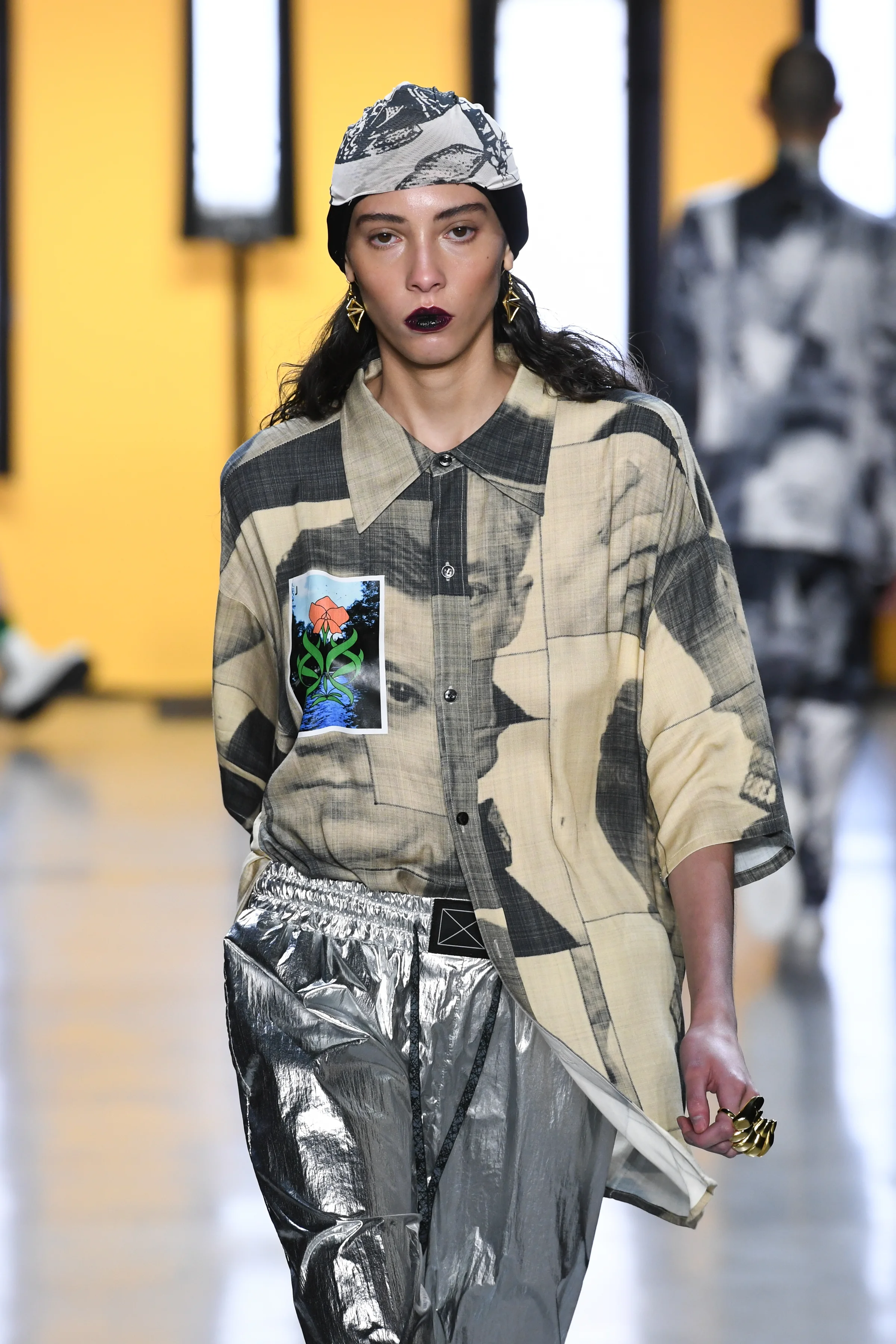 Dirty Pineapple’s runway show this New York Fashion Week was one that reflected what they call Recycled Love. To objectify one’s self, this show represents the destruction of ego for the purpose of feeling; loving. Body print makes collage imagery of various body parts. Layered print gives the ideas of different skin, and tie die made of words of things lost within relationships. An eclectic attention to detail from the designer’s concept.