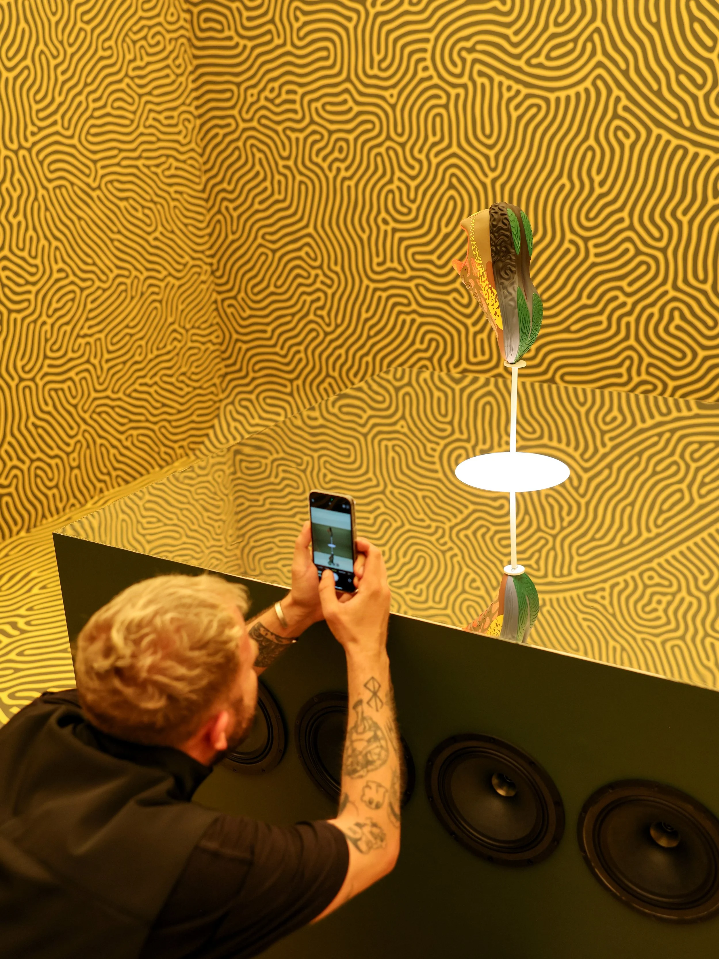 Inside the pop-up, visitors are transported into the mind of Salehe Bembury—a space where nature and machine engage in a captivating dialogue. At the heart of the experience lies a futuristic lab, where the Velum is displayed as a meticulously crafted artifact under observation. Blending Bembury’s signature organic design language with PUMA’s technical prowess, the sneaker transcends its physical form, influencing the entire environment. Organic textures emerge from the walls, ripple beneath the floors, and extend overhead, creating a fully immersive experience that mirrors the shoe’s innovative design.