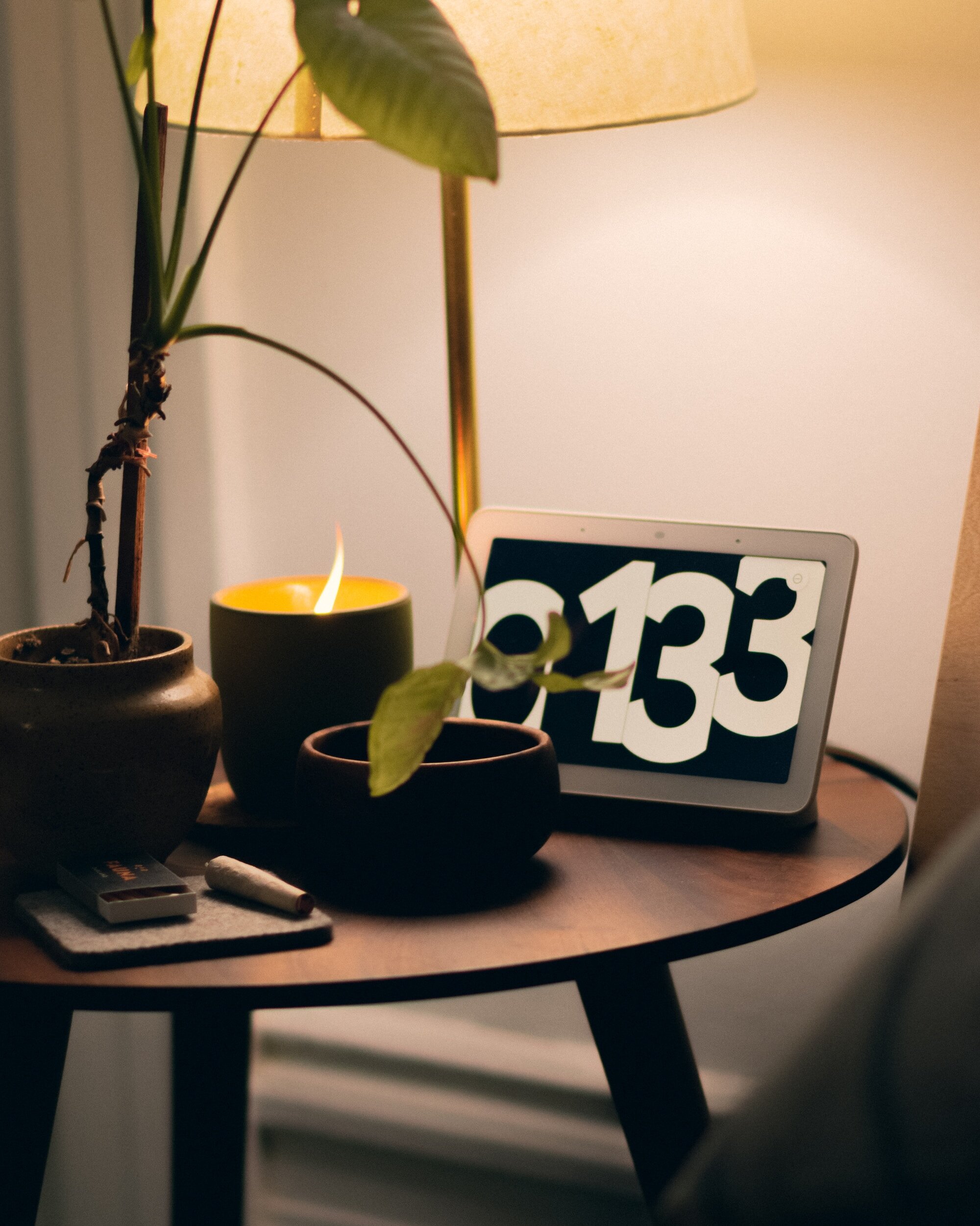 Dim the lights to create a cocooning atmosphere more conducive to meditation and sleep.