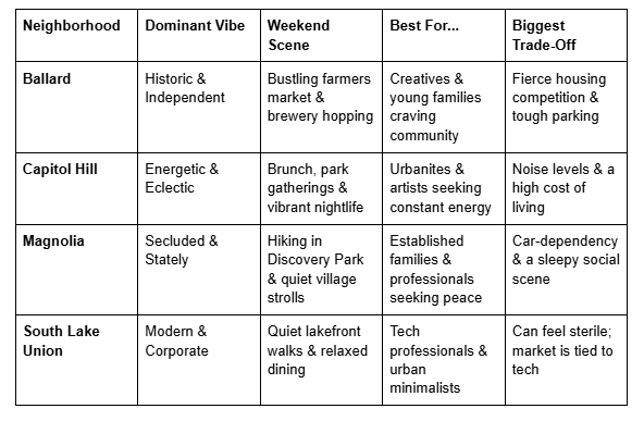 This data misses the neighborhood's true personality. It can't tell you about the weekend vibe, the quality of the local coffee, or the unspoken etiquette of the neighborhood dog park. That's the "story" that’s missing from the spreadsheets. This guide is designed to bridge that gap, offering an insider's tour of what daily life is really like in Seattle's most sought-after neighborhoods.