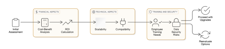 Check for **tool compatibility** next. Make sure any new tech can integrate smoothly with existing systems—think API support and how old your PLCs are.