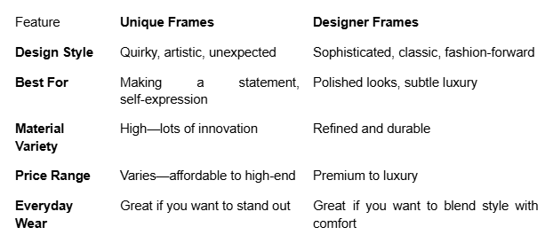 Who says you need to stick to just one look? Many people build a small eyewear wardrobe—maybe one unique pair for weekends and creative settings, and a designer pair for work or formal events. Some designer brands are even embracing experimental designs, so you might find a hybrid that checks both boxes.