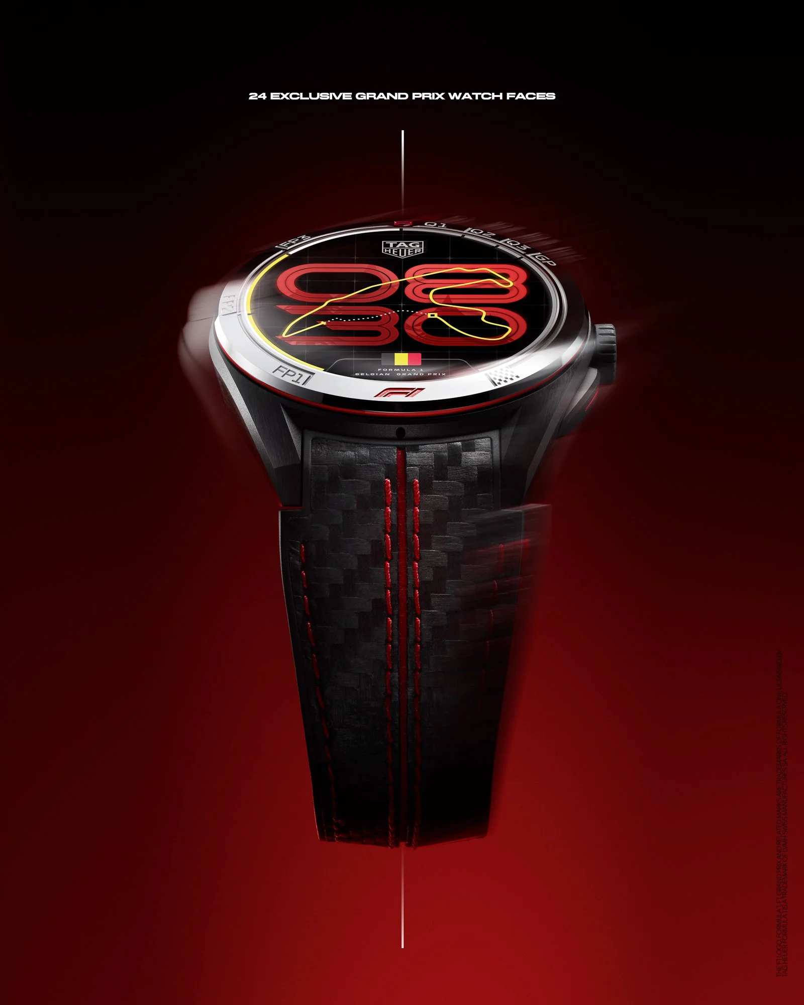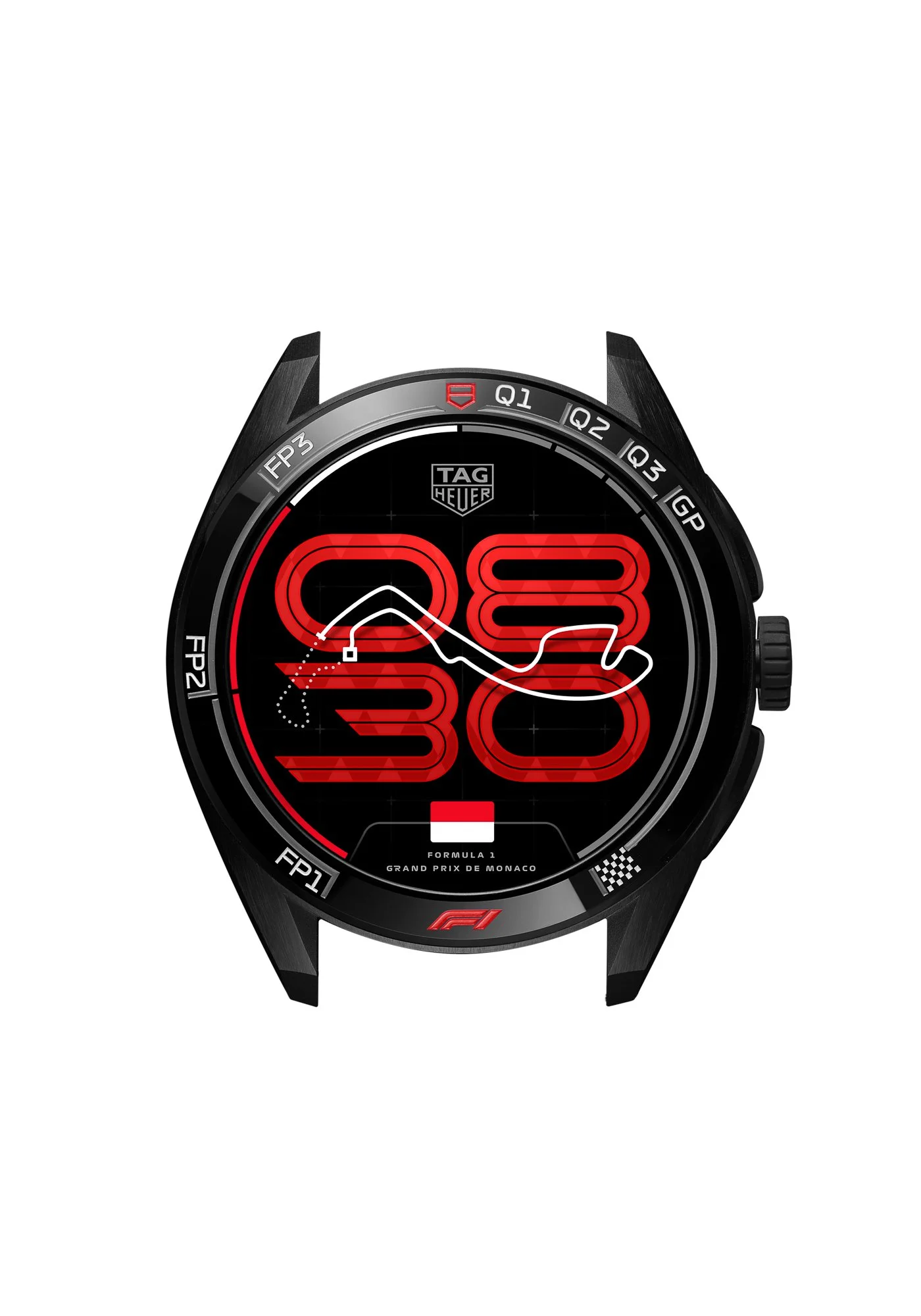 The defining feature of the watch is its adaptive “Race Track” face. Digital time sits beneath the outline of each circuit, dynamically updating across all 24 Grand Prix weekends. Country flags, race names and track silhouettes shift throughout the season, while a moving dot traces each circuit to mark the passing seconds—a subtle nod to the rhythm of competition.
