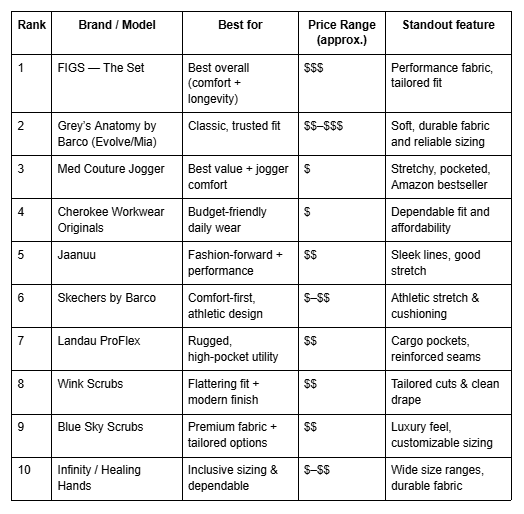 This guide is written for women who want scrub trousers that are comfortable and built to last. Whether you need a budget-friendly pair for everyday wear, a premium pair for long-term durability, or a stylish pair that still performs on the job, we’ve collated top recommendations backed by retail best-seller data, nurse reviews, and editorial roundups. Alongside the top 10 list, you’ll find actionable buying criteria, fabric and fit guides, and care instructions to help your scrubs survive heavy use and many wash cycles.