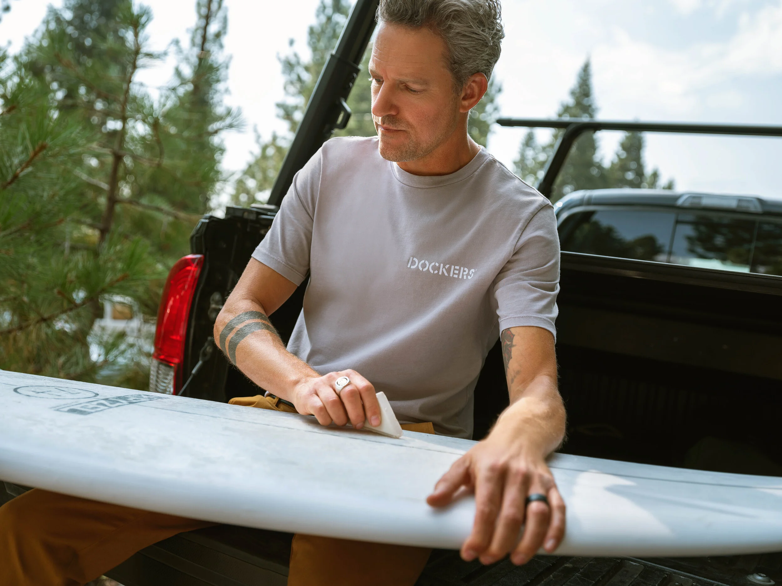 And this unique mix of attributes serves as the backdrop that takes us back to our California roots, as well as an exciting new three-year partnership between Dockers and Waves For Water founder Jon Rose.