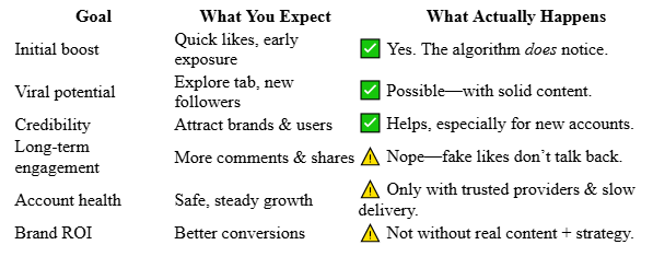 Let’s not pretend it’s all bad. When done right, buying likes can kickstart growth and get your posts the attention they deserve.